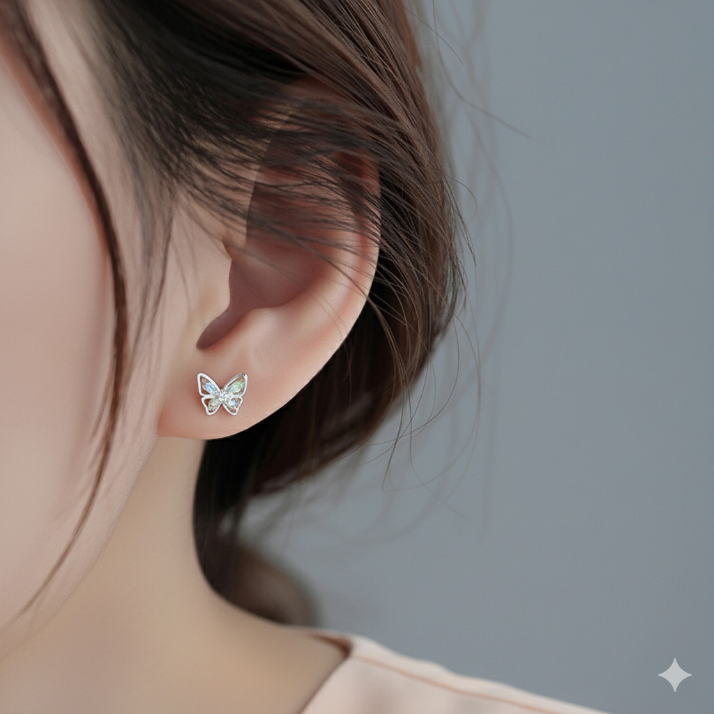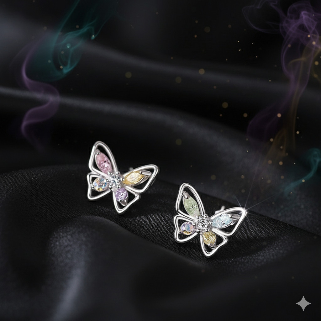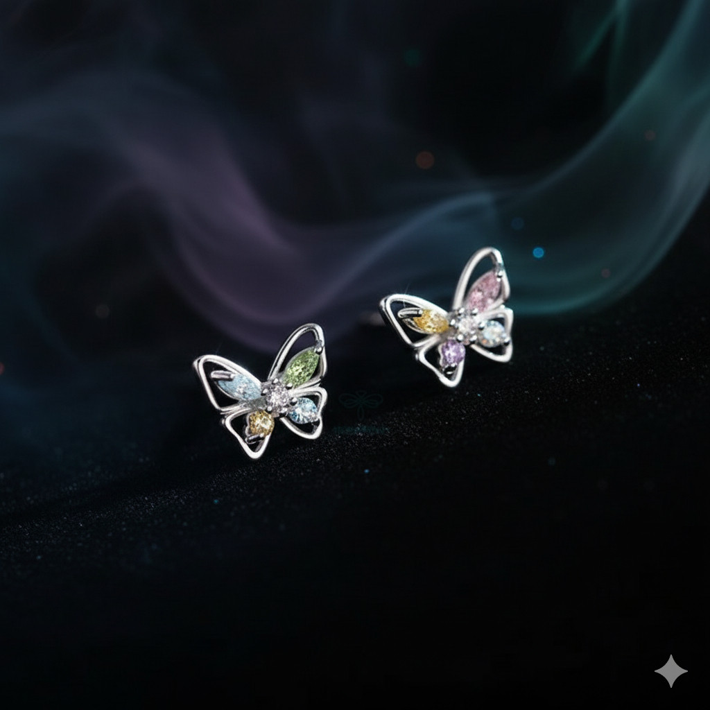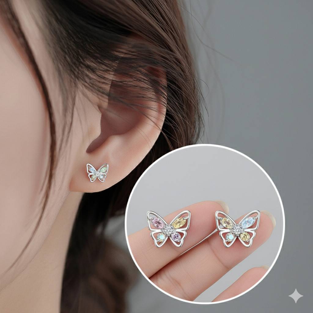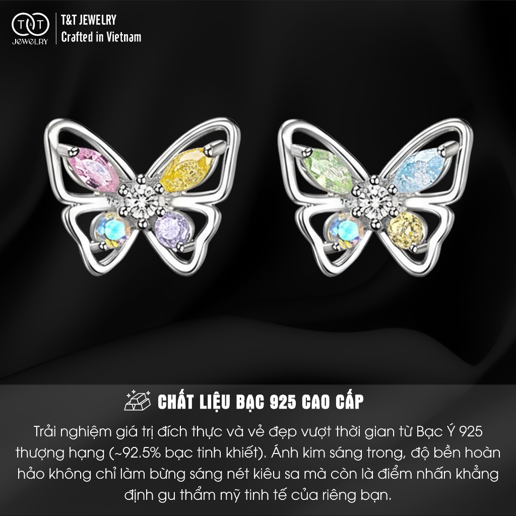 Bông Tai Bạc Nữ Hồ Điệp Giao Hưởng Sắc Màu Đính Đá CZ Đa Sắc Lộng Lẫy T&T Jewelry B08