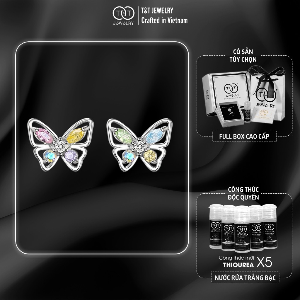 Hãy là người đầu tiên nhận xét “Bông Tai Bạc Nữ Hồ Điệp Giao Hưởng Sắc Màu Đính Đá CZ Đa Sắc Lộng Lẫy T&T Jewelry B08”