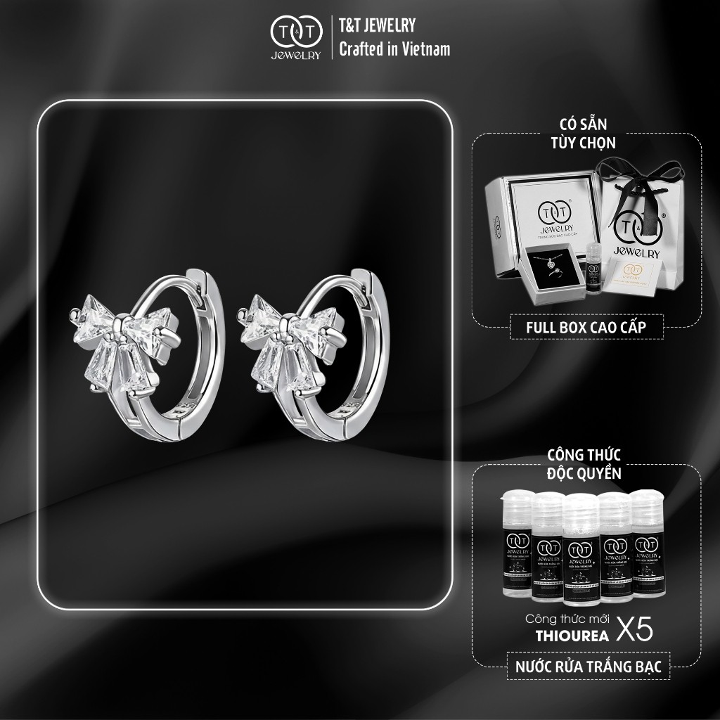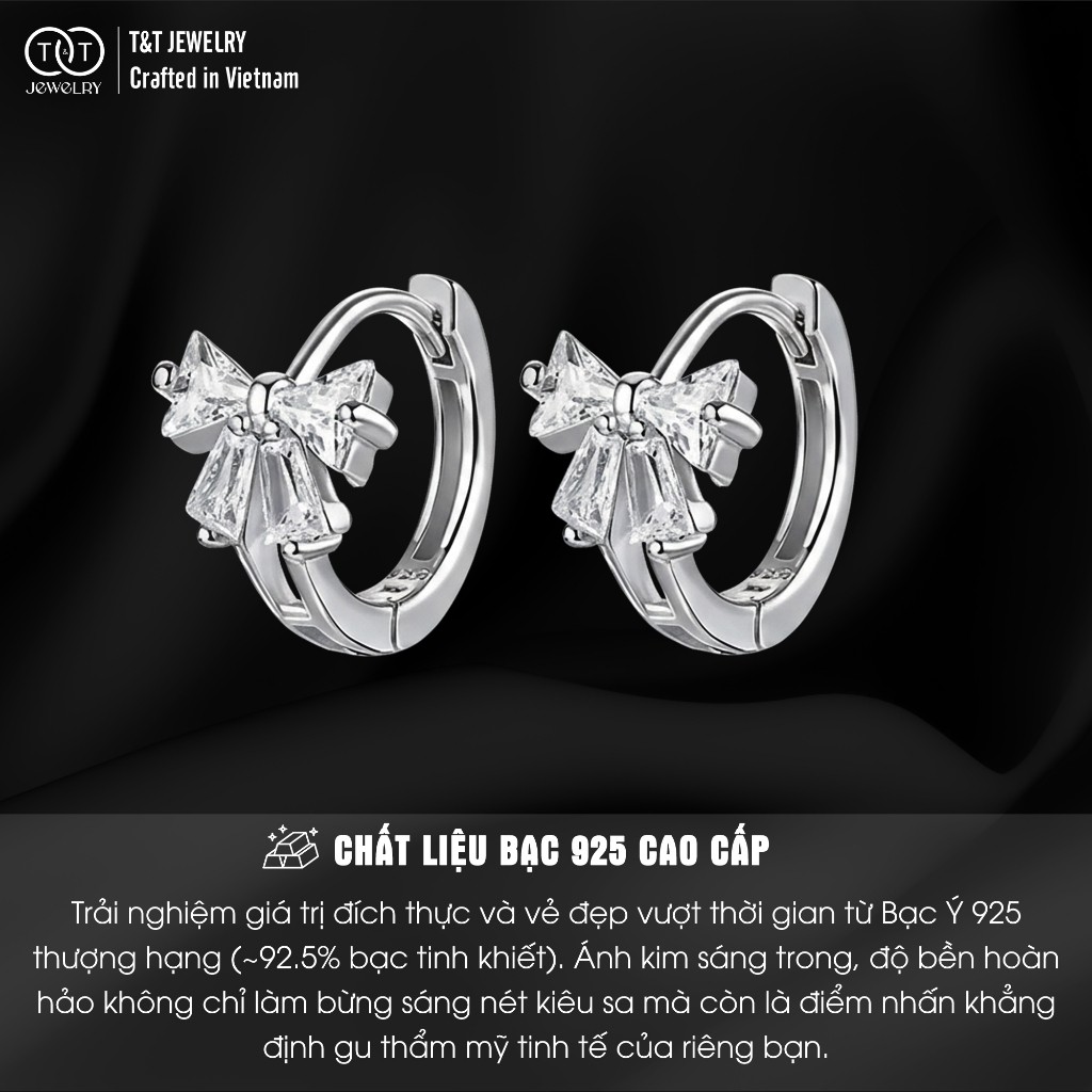 Bông Tai Bạc Nữ Chiếc Nơ Tiểu Thư Kiểu Vòng Ôm Thanh Lịch Tinh Tế T&T Jewelry B14