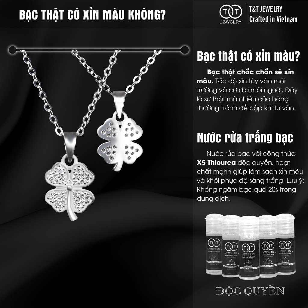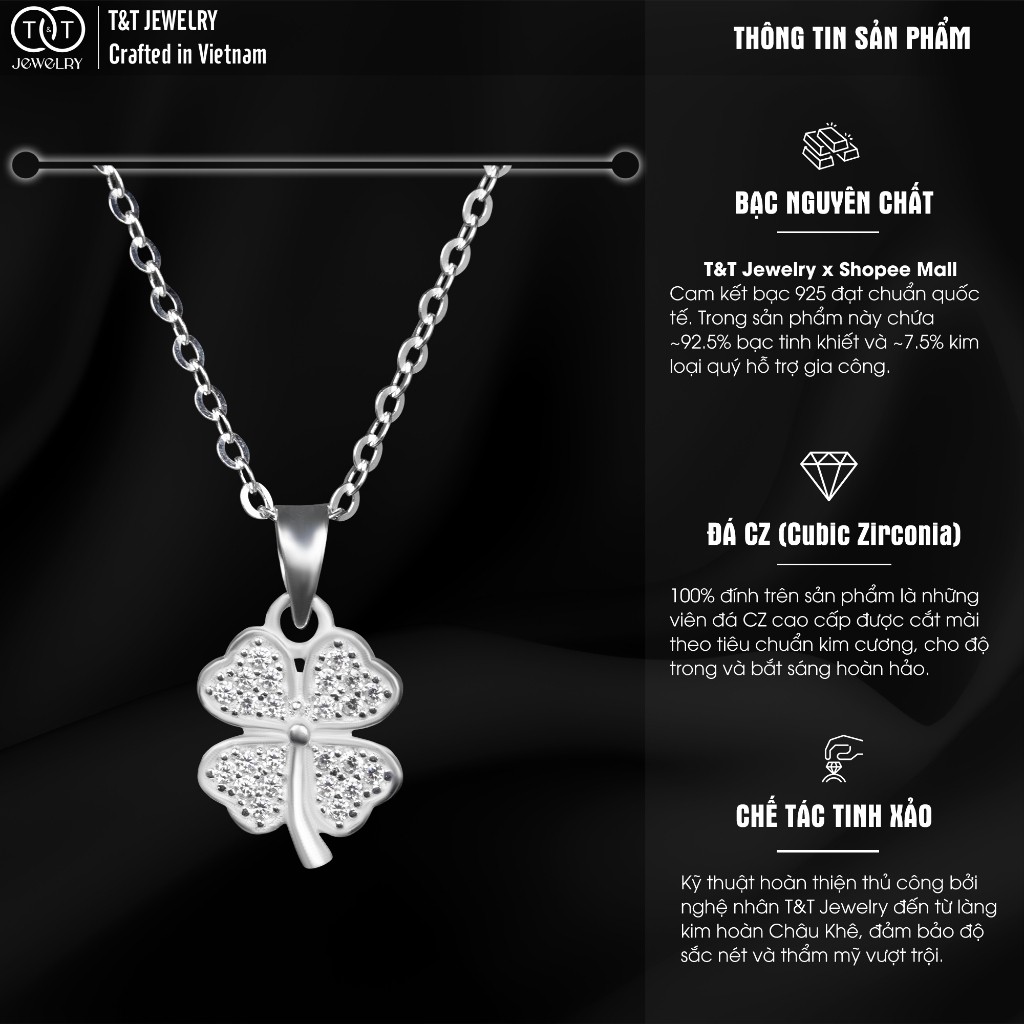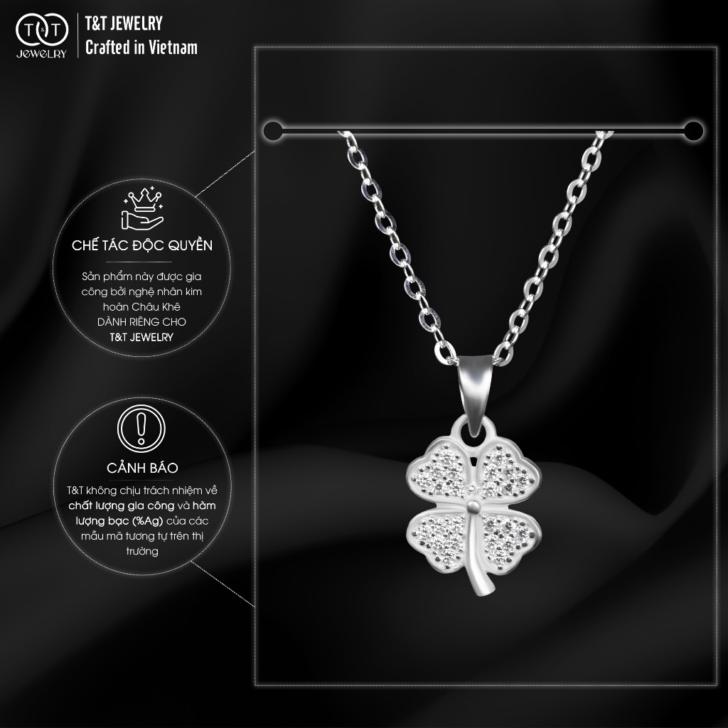 Dây chuyền Bạc nữ Hoa Bốn Lá s925 Mặt Đá Tròn T&T Jewelry cao cấp DC04