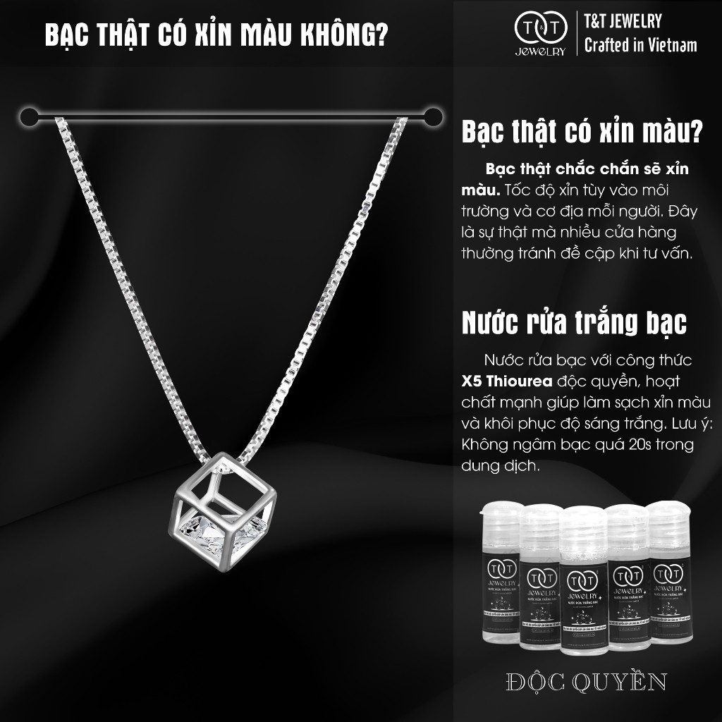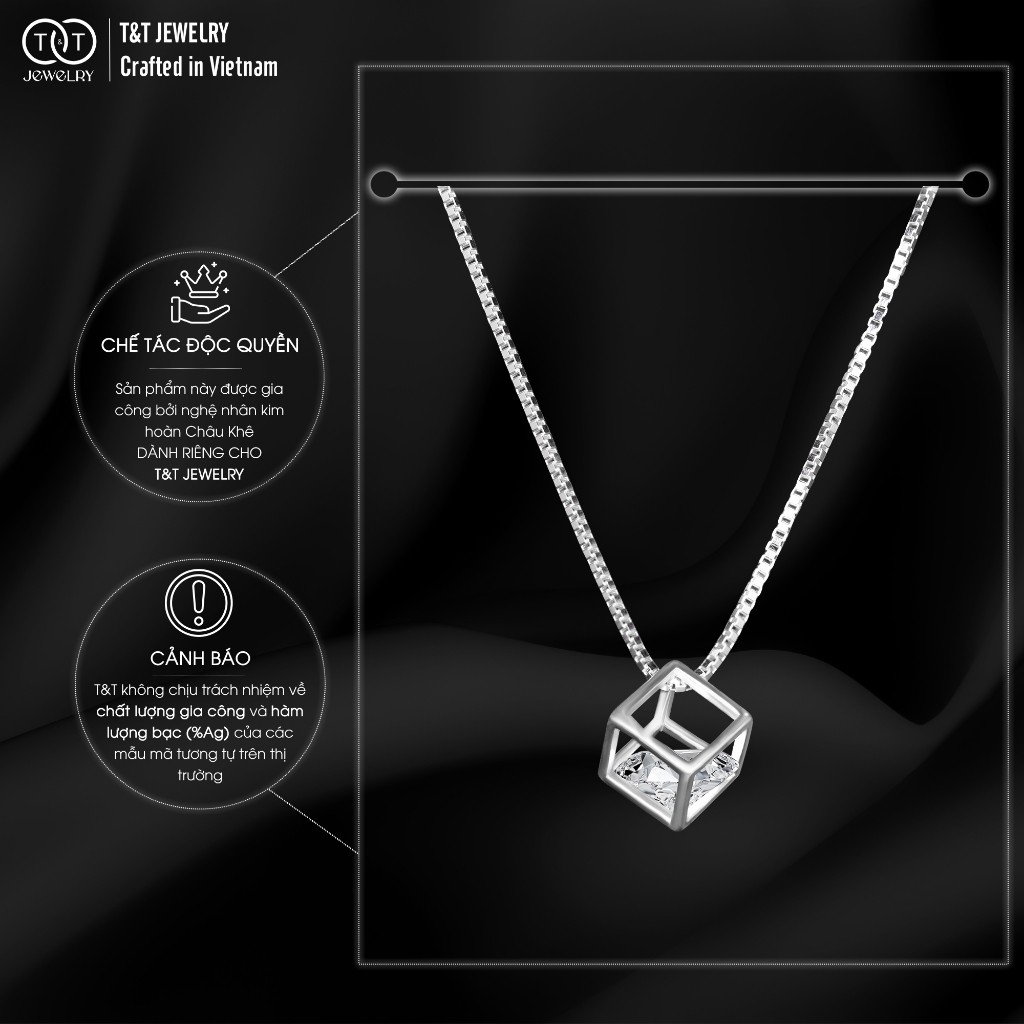 Dây chuyền Bạc nữ Rubik Tinh Xảo s925 Mặt Đá Tròn T&T Jewelry cao cấp DC03