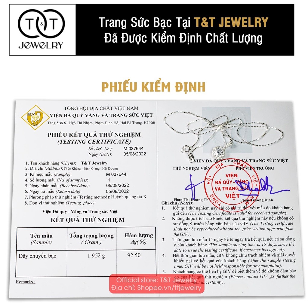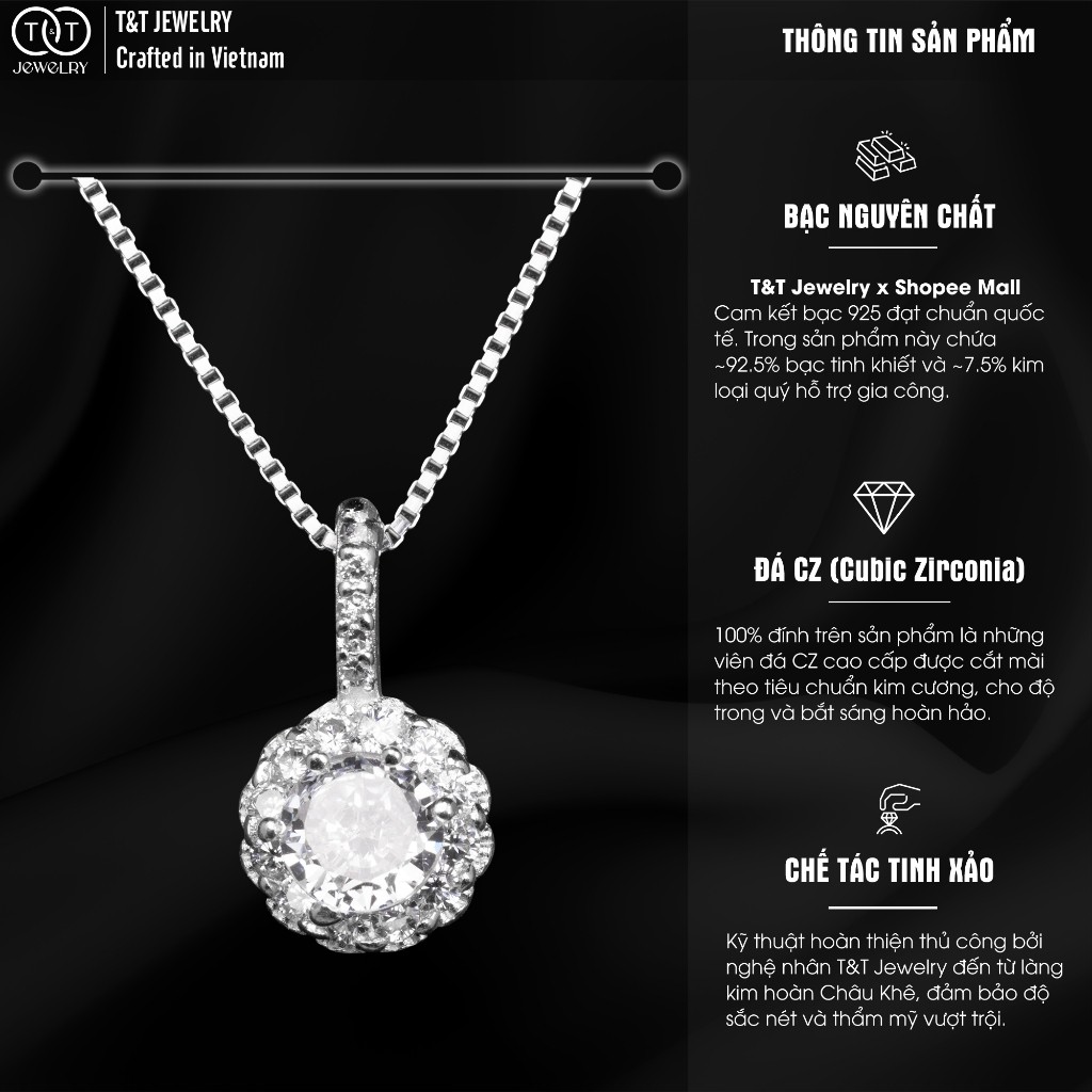 Dây chuyền nữ Bạc Ý s925 Đính Đá Chòng – T&T Jewelry cao cấp DC08
