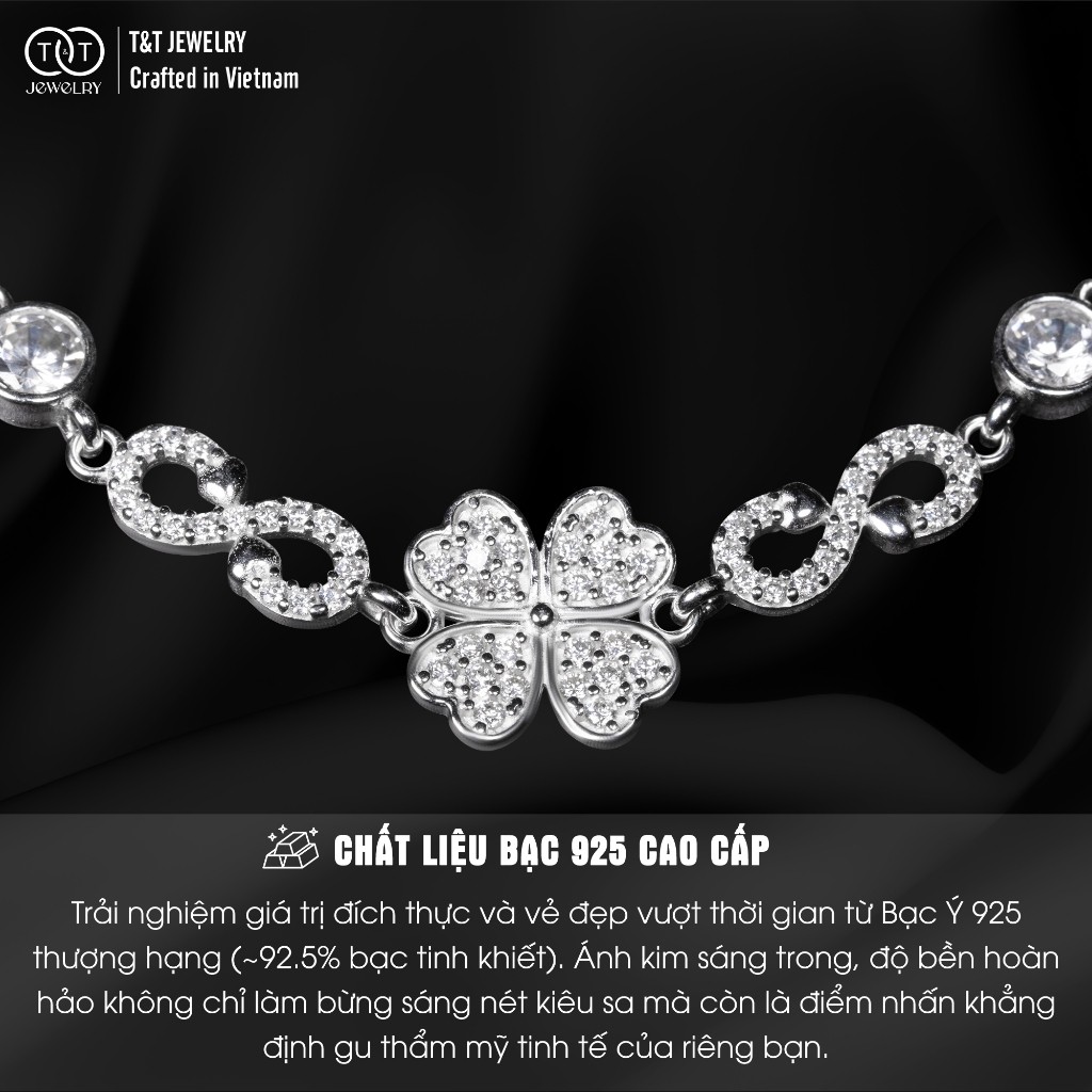 Lắc Tay Bạc Nữ Dây Vô Cực Đan Lồng Cỏ 4 Lá May Mắn, Lắc Tay Cao Cấp T&T Jewelry LT2825