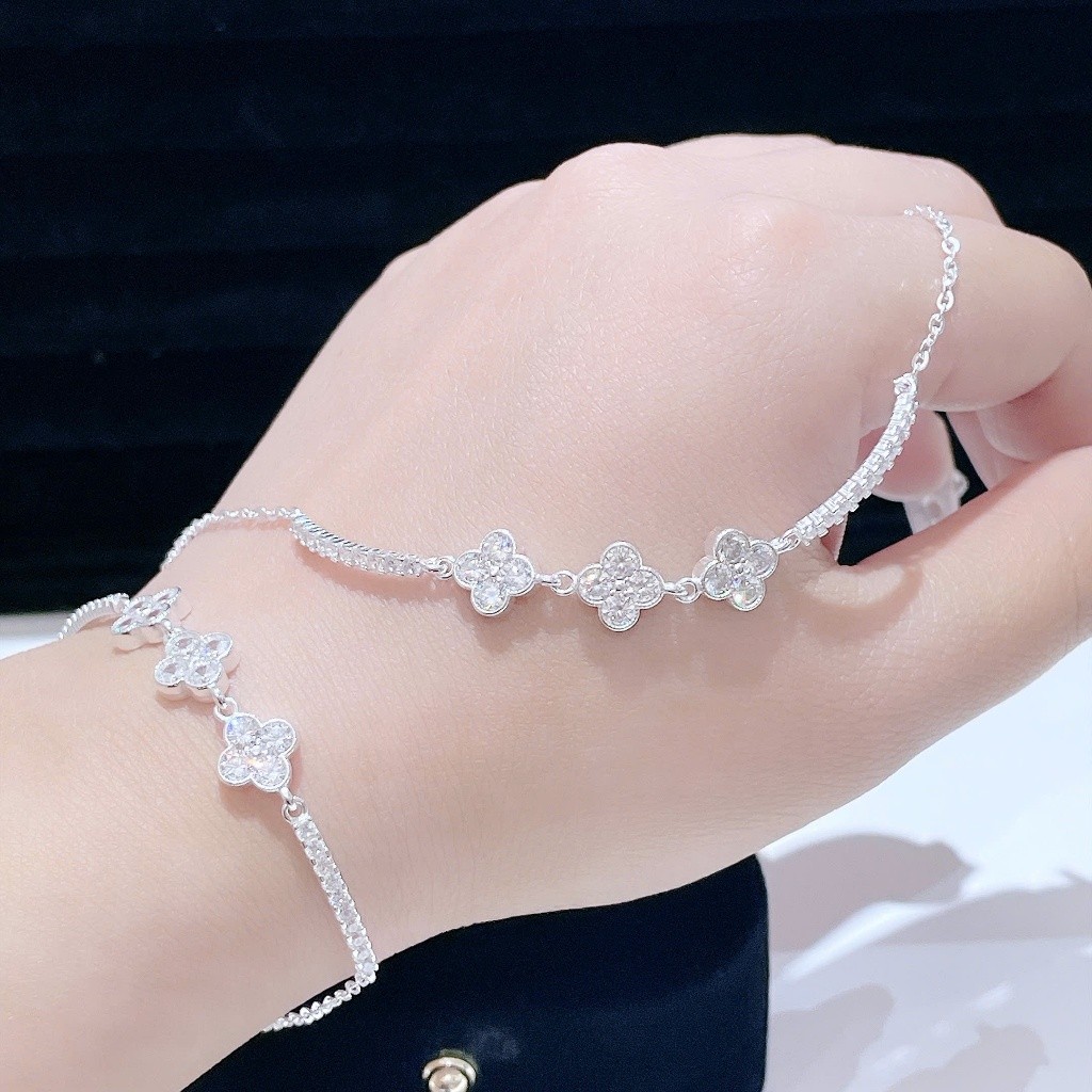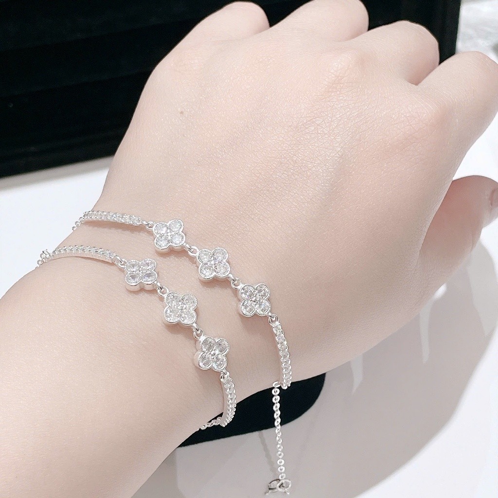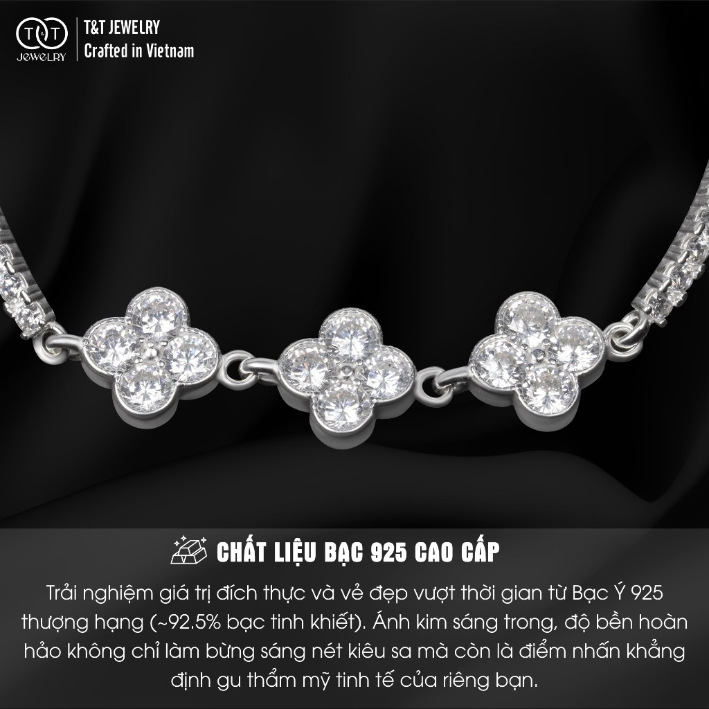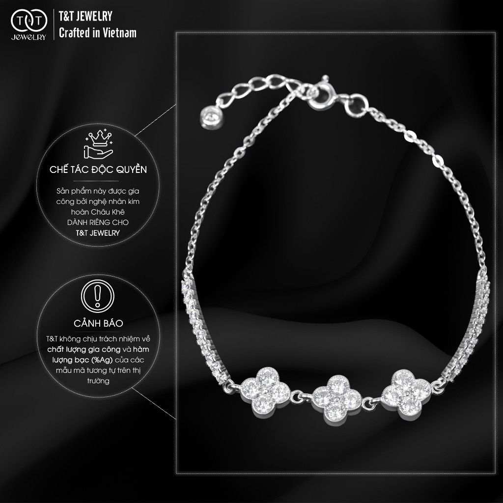 Lắc tay Bạc Nữ Đính Đá Cỏ Bốn Lá May Mắn Tinh Xảo T&T Jewelry LT716252