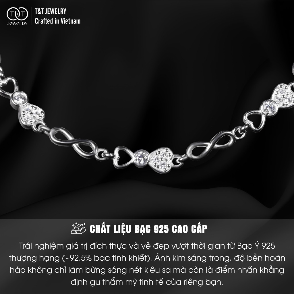 Lắc Tay Bạc Nữ Họa Tiết Trái Tim Vô Cực Đan Lồng Tinh Xảo, Sang Trongj T&T Jewelry LT28251