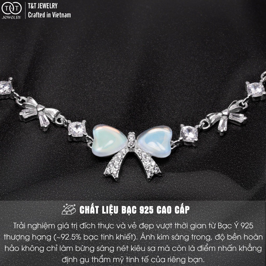 Lắc Tay Bạc Nữ Nơ Tình Yêu Đính Đá Trái Tim Lấp Lánh T&T Jewelry LT715251