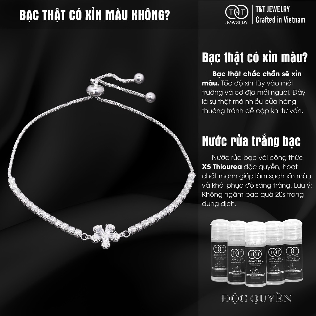 💖 Nàng ơi, có phải nàng đang tìm một chiếc lắc tay bạc vừa xinh xắn, vừa tinh tế để tô điểm cho cổ tay ngọc ngà? Hãy để T&T Jewelry giúp nàng nhé!✨ Chiếc lắc tay bạc nữ S925 này không chỉ là trang sức, mà còn là một lời thì thầm về vẻ đẹp dịu dàng, thanh lịch. Thiết kế nổi bật với bông hoa đá CZ lấp lánh ✨ ngay trung tâm, như một điểm nhấn thu hút mọi ánh nhìn. Dải đá CZ nhỏ xinh chạy dọc một phần dây lắc càng tăng thêm nét yêu kiều, bắt sáng diệu kỳ theo từng cử động.🔗 Đặc biệt, thiết kế dây rút thông minh cho phép nàng dễ dàng điều chỉnh độ rộng vừa vặn hoàn hảo với mọi kích cỡ cổ tay. Thoải mái vận động cả ngày mà không lo vướng víu!Từng chi tiết được chế tác tỉ mỉ bởi nghệ nhân làng kim hoàn Châu Khê với lịch sử 500 năm, mang đậm dấu ấn thủ công tinh xảo độc quyền từ T&T JEWELRY.⚠️ Lưu ý quan trọng: Vẻ đẹp độc đáo này là của riêng T&T JEWELRY. Nếu có sản phẩm tương tự trên thị trường, chúng tôi không thể đảm bảo hàm lượng bạc chuẩn S925 và chất lượng thiết kế tinh xảo như sản phẩm chính hãng của T&T. Hãy là người tiêu dùng thông thái!📸 Hình ảnh do T&T JEWELRY tự chụp 100% từ sản phẩm thật. Tuy nhiên, màu sắc có thể chênh lệch nhẹ (khoảng 95-98%) tùy vào điều kiện ánh sáng và màn hình thiết bị của bạn.💎 THÔNG TIN SẢN PHẨM 💎Thương hiệu: T&T JEWELRYChất liệu: Bạc S925 cao cấp (92.5% bạc nguyên chất, 7.5% hợp kim giúp tăng độ cứng, độ bền và giữ form trang sức tốt hơn bạc ta nguyên chất). Đính đá CZ (Cubic Zirconia) cao cấp, trong và sáng lấp lánh.Nguồn gốc: Chế tác 100% bởi nghệ nhân kim hoàn làng nghề truyền thống Châu Khê (Hải Dương).Kiểu dáng: Lắc tay dây rút, mặt hoa đính đá CZ.Phong cách: Thanh lịch, nữ tính, hiện đại.✨ T&T JEWELRY – BẢO HÀNH & HỖ TRỢ KHÁCH HÀNG ✨💖 Cảm ơn bạn đã chọn T&T Jewelry!Trang sức không chỉ là một món phụ kiện, mà còn là cách bạn thể hiện phong cách và cá tính. Khi mua trang sức online, chúng tôi hiểu rằng bạn có thể có những băn khoăn như:1️⃣ “Liệu sản phẩm có giống ảnh không?”2️⃣ “Có phải bạc thật không?”3️⃣ “Nếu có vấn đề thì làm sao?”💯 T&T Jewelry x Shopee Mall cam kết mang đến bạc 925 cao cấp cùng sự hỗ trợ tận tâm, giúp bạn hoàn toàn yên tâm khi mua sắm:1️⃣ Hoàn tiền nhanh chóng trong 7 ngày nếu sản phẩm không đúng mô tả hoặc có lỗi từ nhà sản xuất.2️⃣ T&T cam kết đền gấp 10 lần giá trị nếu sản phẩm khách hàng nhận được là bạc giả – và chúng tôi chịu hoàn toàn trách nhiệm trước pháp luật Việt Nam.3️⃣ Bảo hành trọn đời với lỗi kỹ thuật do nhà sản xuất – chỉ cần nhắn Shopee Chat, chúng tôi sẽ hỗ trợ ngay!⛔ Hỗ trợ nhanh chóng và duy nhất qua Shopee Chat – đảm bảo giao dịch an toàn, MINH BẠCH, tuân thủ quy định của Shopee và giúp bạn tránh mọi rủi ro từ các kênh liên lạc ngoại sàn shopee. Nếu có bất kỳ vấn đề gì, đừng lo lắng! Nhắn ngay cho chúng tôi qua Shopee Chat, đội ngũ T&T Jewelry sẽ hỗ trợ tận tình!❓ SỰ THẬT VỀ BẠC 925 – HIỂU ĐỂ AN TÂM1️⃣ Trang sức của T&T Jewelry có phải bạc thật không?✔ Cam kết 100% bạc 925 cao cấp, chứa 92,5% bạc nguyên chất, đạt tiêu chuẩn quốc tế.📌 Tại sao không phải bạc nguyên chất 100%? Bạc nguyên chất quá mềm, dễ móp méo. Pha hợp kim giúp trang sức bền, cứng, giữ form tốt hơn – đây là tiêu chuẩn chung của ngành kim hoàn.2️⃣ Tại sao bạc bị xỉn màu? Có phải hàng kém chất lượng không?🌟 Hoàn toàn không! Đây chính là dấu hiệu của bạc thật! 🌟 Bạc phản ứng tự nhiên với lưu huỳnh trong không khí, mồ hôi… khiến bạc xỉn màu. Đây là tính chất hóa học tự nhiên, không phải lỗi sản phẩm. Tốc độ xỉn màu tùy thuộc cơ địa và môi trường.💡 Giải pháp cực đơn giản: Dùng nước rửa bạc chuyên dụng T&T (sáng bóng trong 5 giây!) hoặc lau chùi thường xuyên.3️⃣ Tại sao có loại bạc không xỉn? Thường là bạc đã được phủ xi (rhodium, vàng trắng…). Lớp xi này sẽ mòn dần theo thời gian, bạc bên trong vẫn có thể xỉn nếu không chăm sóc.🌟 HƯỚNG DẪN SỬ DỤNG ĐỂ TRANG SỨC BẠC LUÔN SÁNG BÓNG 🌟✨ Trang sức bạc đẹp nhất khi được yêu thương và chăm sóc đúng cách!1️⃣ Lau chùi nhẹ nhàng sau khi đeo bằng khăn mềm.2️⃣ Hạn chế tiếp xúc hóa chất (nước hoa, mỹ phẩm…).3️⃣ Cất giữ trong hộp kín/túi zip khi không dùng.4️⃣ Làm sạch định kỳ bằng nước rửa bạc T&T khi thấy xỉn màu.5️⃣ Tháo trang sức khi vận động mạnh, làm việc nặng, đi bơi.💖 Bạn Hài Lòng – T&T Hạnh Phúc: Một đánh giá 5 sao ⭐⭐⭐⭐⭐ sẽ là động lực rất lớn để chúng tôi phục vụ bạn tốt hơn!