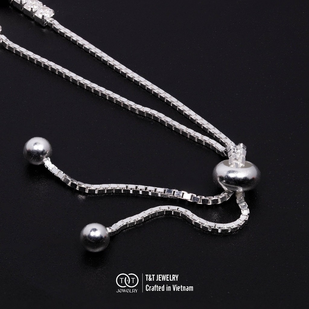 Lắc Tay Bạc Nữ Nơ Xinh Đính Đá Zircon Lấp Lánh Dây Rút Tinh Tế Tôn Da từ T&T Jewelry LT53251