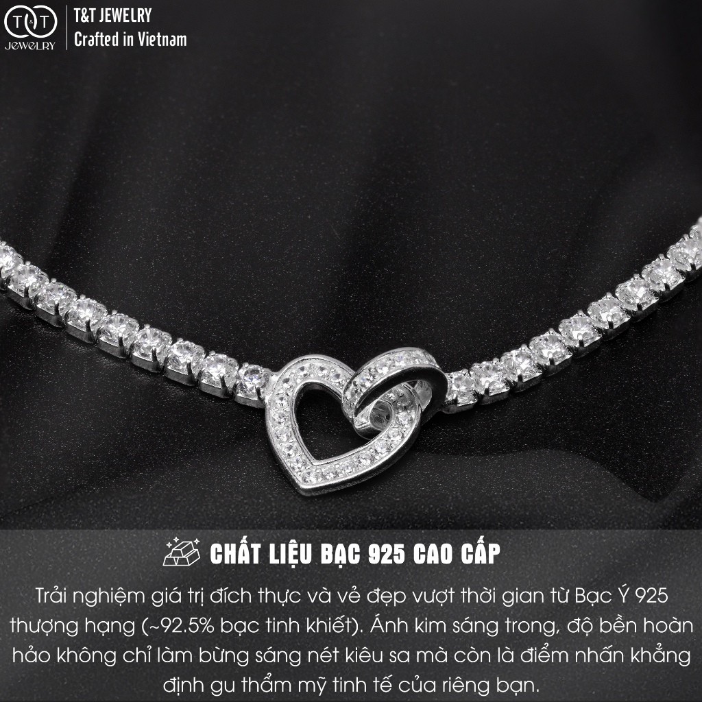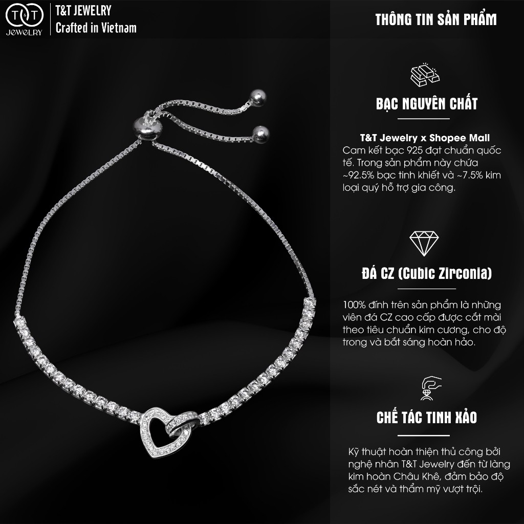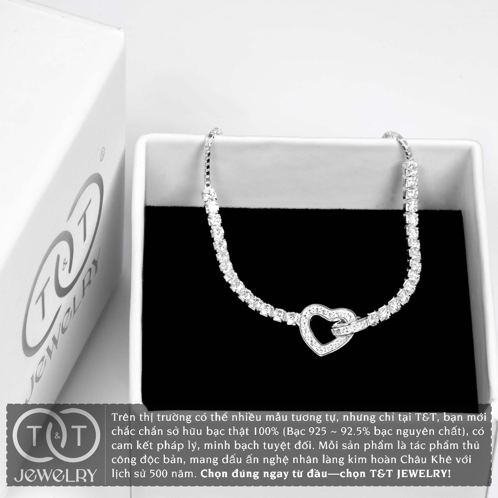 Lắc Tay Bạc Nữ S925 Trái Tim Lồng Kép Đính Đá CZ Lấp Lánh Tinh Xảo từ T&T Jewelry LT54258