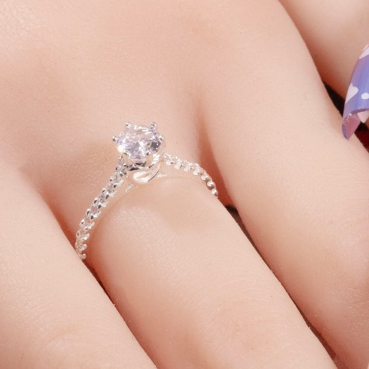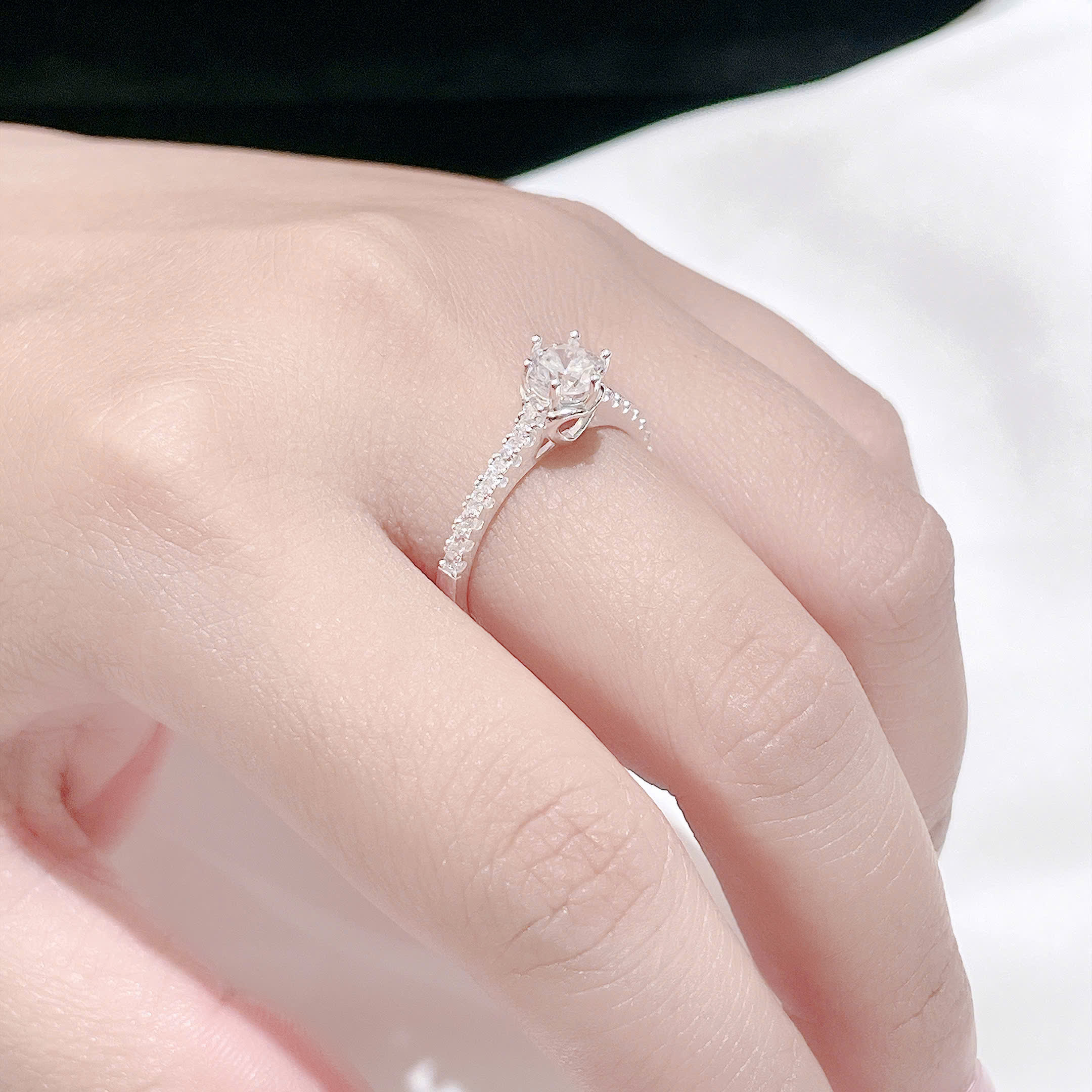 Nhẫn Bạc Nữ 6 Chấu Nạm Đá Thân Nhẫn Lấp Lánh Cao Cấp T&T Jewelry NN0561