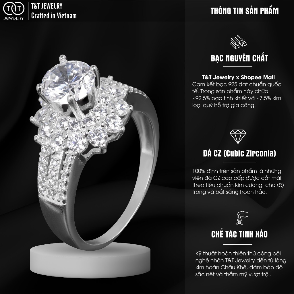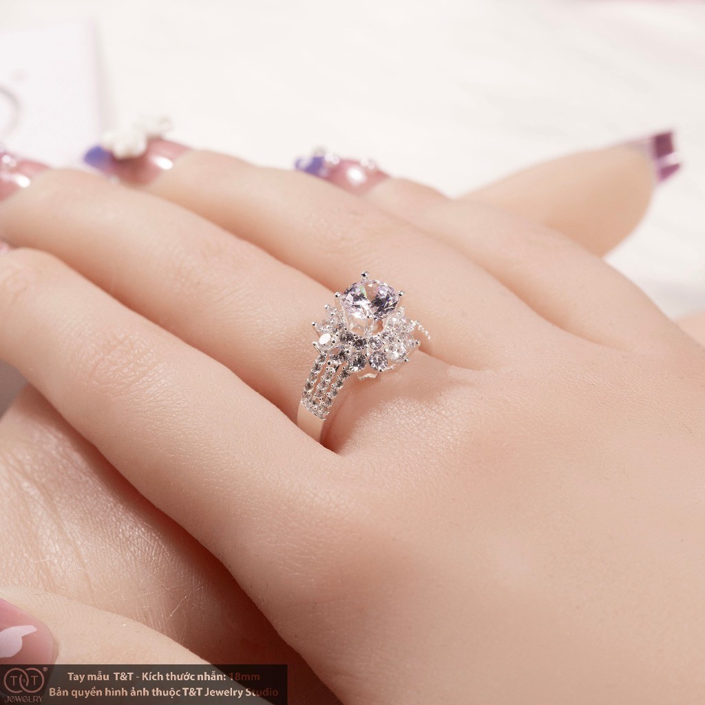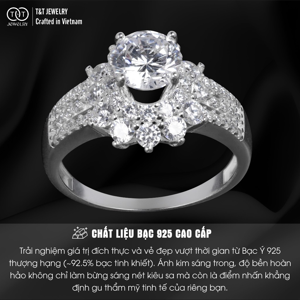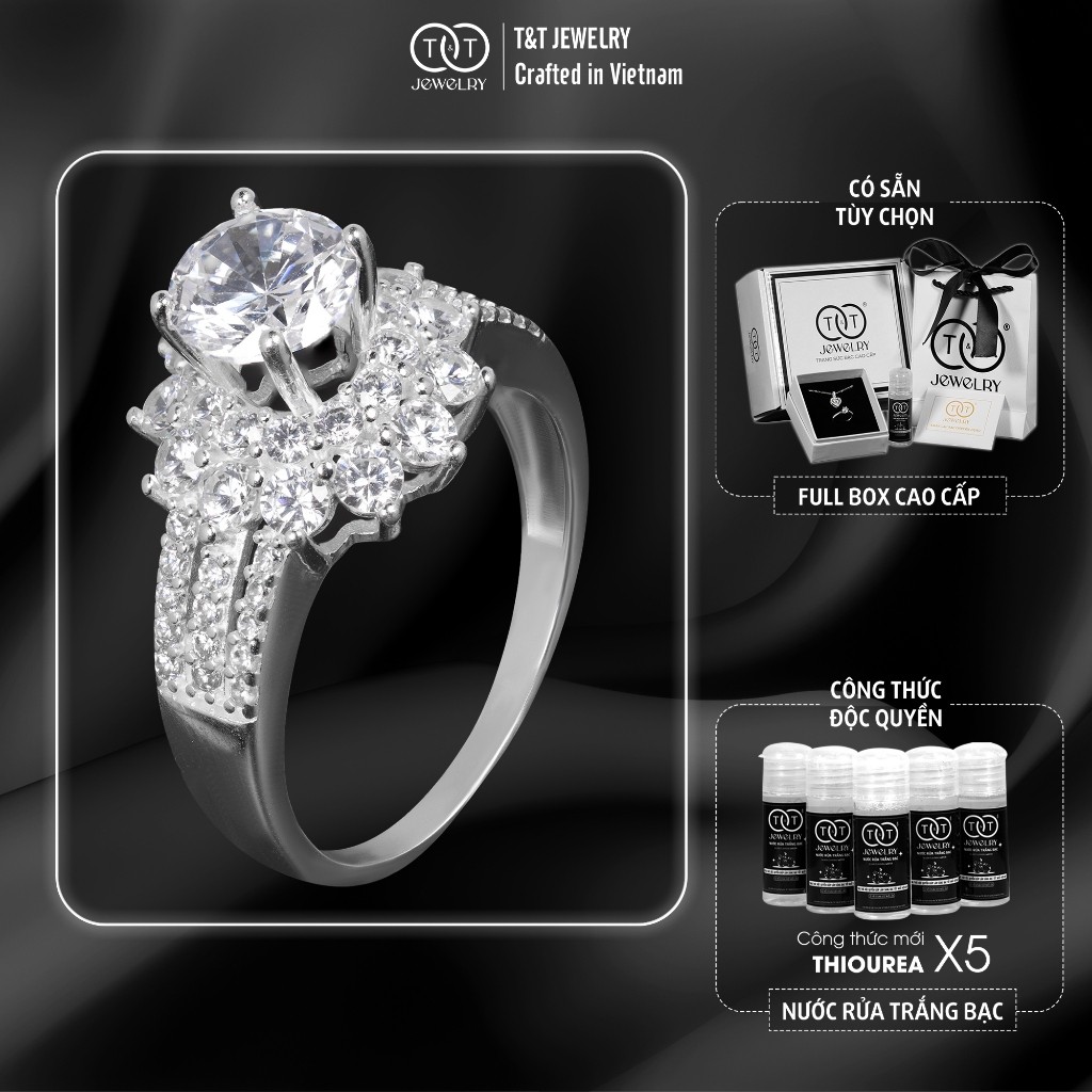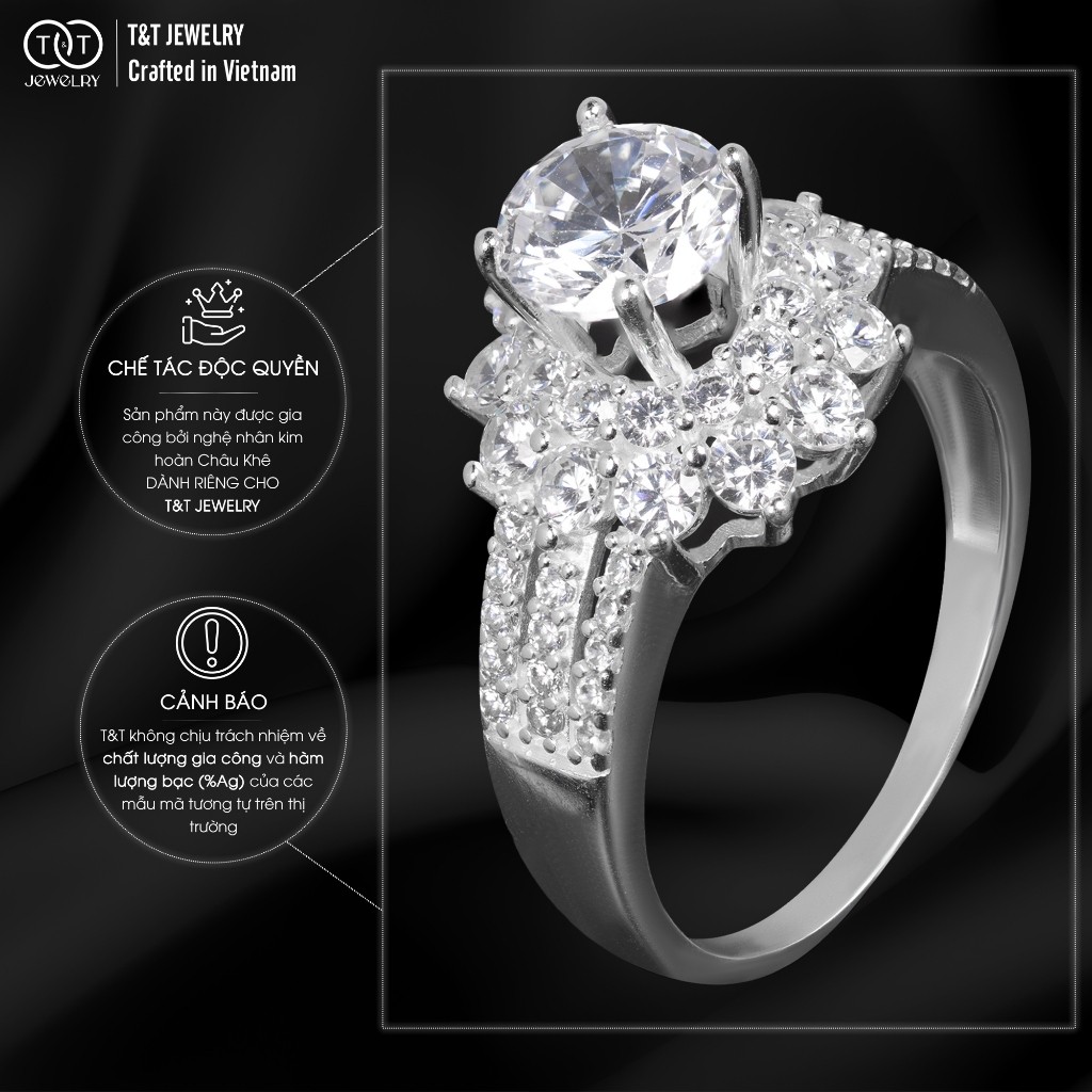Nhẫn Bạc Nữ Bông Hoa Nữ Hoàng Quyền Quý Đính Đá CZ Siêu Sáng Sang Trọng T&T Jewelry NN019