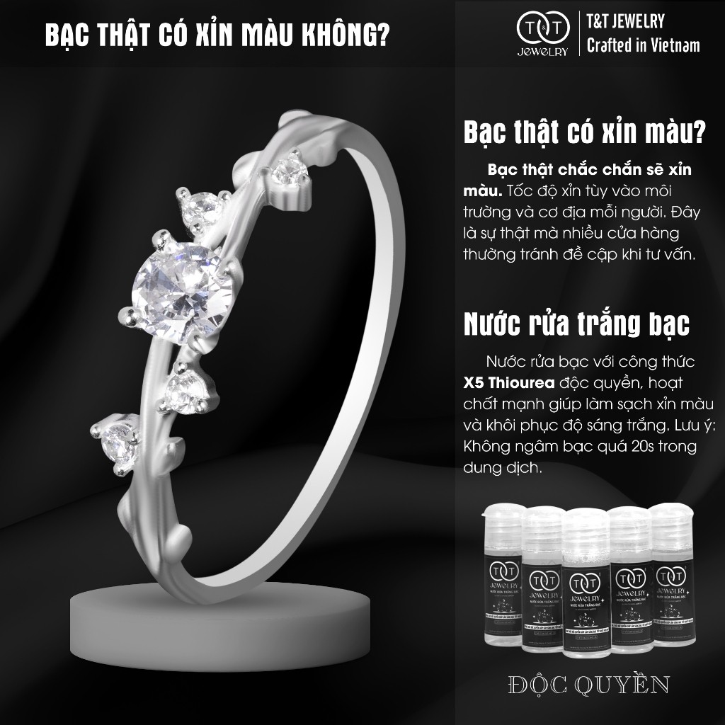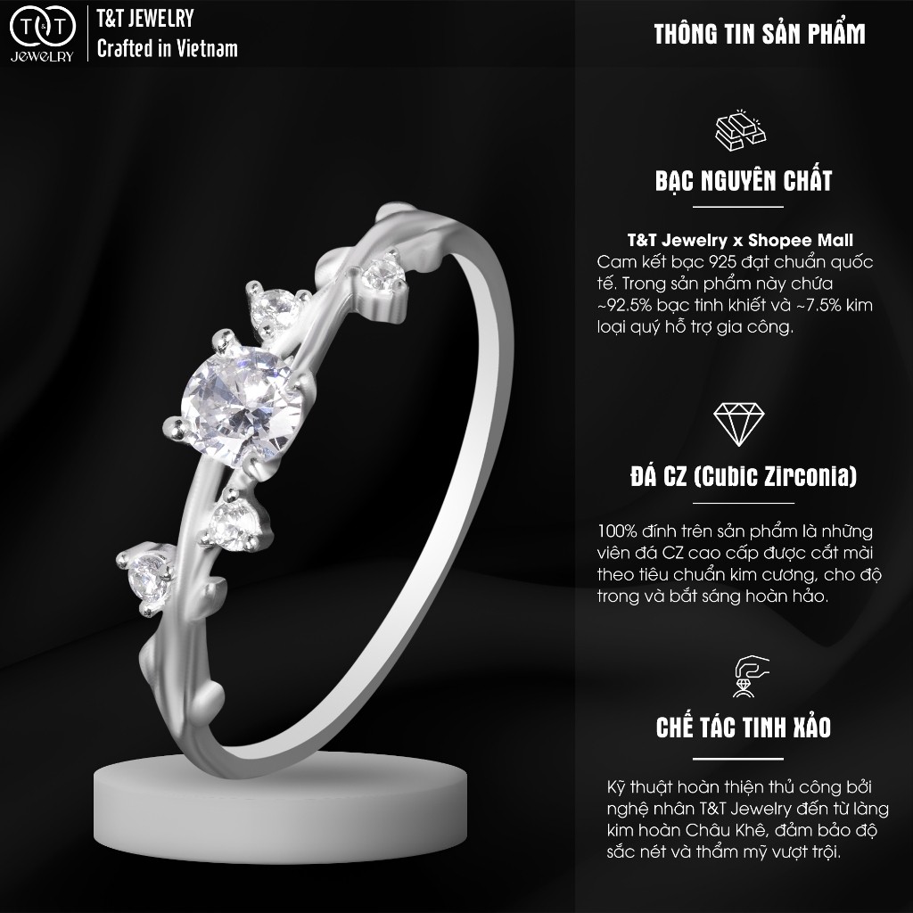 ✨ T&T JEWELRY hiểu rằng, vẻ đẹp tinh tế đôi khi đến từ sự mềm mại, duyên dáng và gần gũi với thiên nhiên, như một nhành lá non vươn mình trong nắng sớm.💍 Chiếc nhẫn bạc nữ S925 này là lựa chọn hoàn hảo cho cô nàng yêu thích sự nhẹ nhàng, thanh lịch và muốn mang một chút hơi thở thiên nhiên bên mình.🌿 Thiết kế Solitaire với viên đá chủ CZ tròn, cắt giác rực rỡ, được giữ chắc chắn bởi 4 chấu. Điểm nhấn độc đáo và đầy chất thơ nằm ở hai bên vai nhẫn: những chi tiết lá cây được cách điệu tinh xảo ✨, với các viên đá CZ giác cắt Marquise (hình thoi/hạt thóc) tựa như những chiếc lá lấp lánh, vươn nhẹ nhàng trên đai nhẫn thanh mảnh, tạo cảm giác như một cành lá non đang ôm lấy viên đá chủ.💖 Sự kết hợp giữa viên đá chủ kinh điển và họa tiết lá cây mềm mại tạo nên một tổng thể hài hòa, vừa đủ lấp lánh lại vừa rất thanh thoát, nữ tính. Chế tác từ bạc S925 cao cấp bởi nghệ nhân Châu Khê 500 năm kinh nghiệm của T&T, chiếc nhẫn này là món quà tuyệt vời cho tâm hồn yêu thiên nhiên.⚠️ T&T JEWELRY – Chất Lượng Tạo Nên Sự Khác Biệt: Hãy là người tiêu dùng thông thái! Chúng tôi cam kết bạc S925 chuẩn và thiết kế độc quyền. T&T không chịu trách nhiệm về chất lượng bạc hay độ tinh xảo của các sản phẩm nhái mẫu mã. Chọn T&T để sở hữu giá trị đích thực!💎 THÔNG TIN SẢN PHẨM 💎Chất liệu: Bạc S925 Ý cao cấp (92.5% bạc + hợp kim tăng độ cứng, bền), 100% chế tác bởi nghệ nhân Châu Khê. Đá Cubic Zirconia (CZ) cao cấp (tròn, marquise).Xuất xứ: Việt Nam – Thương hiệu T&T JEWELRY (Làng nghề Châu Khê).Bạc xỉn màu? Là dấu hiệu bạc THẬT! Do phản ứng tự nhiên với môi trường. Chỉ 5 giây với nước rửa bạc T&T độc quyền, nhẫn lại sáng bóng như mới.Ảnh sản phẩm: T&T JEWELRY tự chụp 100%. Màu sắc có thể chênh lệch rất nhẹ (dưới 5%) do ánh sáng/thiết bị xem.✨ T&T JEWELRY – AN TÂM MUA SẮM ONLINE ✨💯 Cam kết: Đền 10 lần nếu phát hiện bạc giả. Bảo hành làm sáng MIỄN PHÍ trọn đời. Đổi trả 7 ngày nếu lỗi sản xuất.🛠️ Hỗ trợ An Toàn & DUY NHẤT: Qua Shopee Chat. Minh bạch, đúng chính sách Shopee, bảo vệ bạn khỏi rủi ro từ kênh ngoài sàn.🎁 Quà tặng: Đi kèm hộp đựng trang sức T&T chính hãng.💡 GIỮ NHẪN LUÔN ĐẸP THANH THOÁT 💡Tránh tiếp xúc hóa chất mạnh, mỹ phẩm.Nên tháo khi làm việc nặng, chơi thể thao.Lau nhẹ bằng khăn mềm chuyên dụng sau khi dùng.Bảo quản trong hộp/túi zip kín khi không sử dụng.Làm sáng bằng dung dịch rửa bạc T&T khi cần.Từ khóa và Hashtag:nhẫn bạc nữ, nhan bac nu, nhẫn bạc s925, nhẫn nữ bạc thật, nhẫn bạc đẹp, nhẫn bạc nữ đính đá, nhẫn bạc nữ lá cây, nhẫn bạc hình lá, nhẫn bạc nữ thiên nhiên, nhẫn bạc nữ dây leo, nhẫn solitaire bạc, trang sức bạc nữ, nhẫn bạc nữ xinh xắn, nhẫn bạc nữ thanh lịch, nhẫn bạc t&t jewelry, nhẫn bạc châu khê#nhanbacnu #nhanbac #nhanbacs925 #bac925 #trangsucbac #nhannu #nhanbacdep #nhanlacay #nhanhinhla #nhanthiennhien #nhanbacdinhda #nhansolitaire #phukienthoitrang #nhanbaccaocap #T&TJEWELRY #nhanbacs925nu #nhannudep #nhanthanhlich #nhanxinhxan #ChauKhe