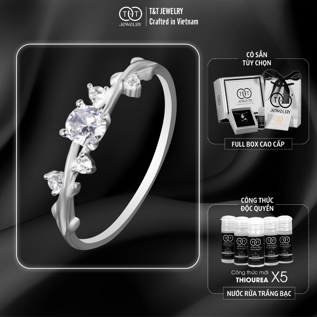 Nhẫn Bạc Nữ Cành Lá Tinh Tế Đính Đá CZ Long Lanh T&T Jewelry N2257