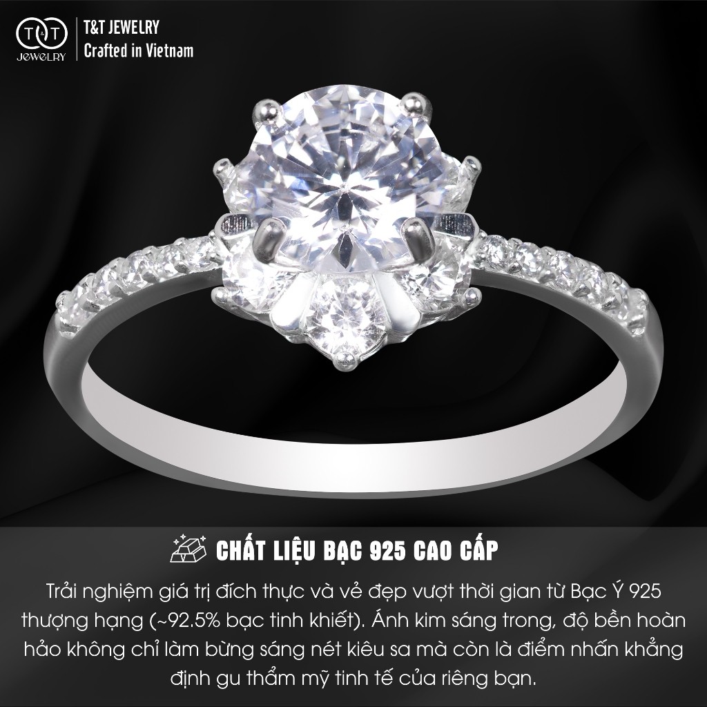 Nhẫn Bạc Nữ Dáng Đóa Hoa Vương Miện Tinh Xảo Đính Đá CZ Lấp Lánh T&T Jewelry N714254