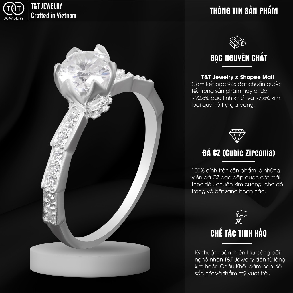Nhẫn Bạc Nữ Dáng Vương Miện Búp Sen Kiêu Hãnh Đính Đá CZ Tinh Xảo T&T Jewelry NN061