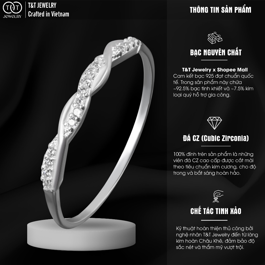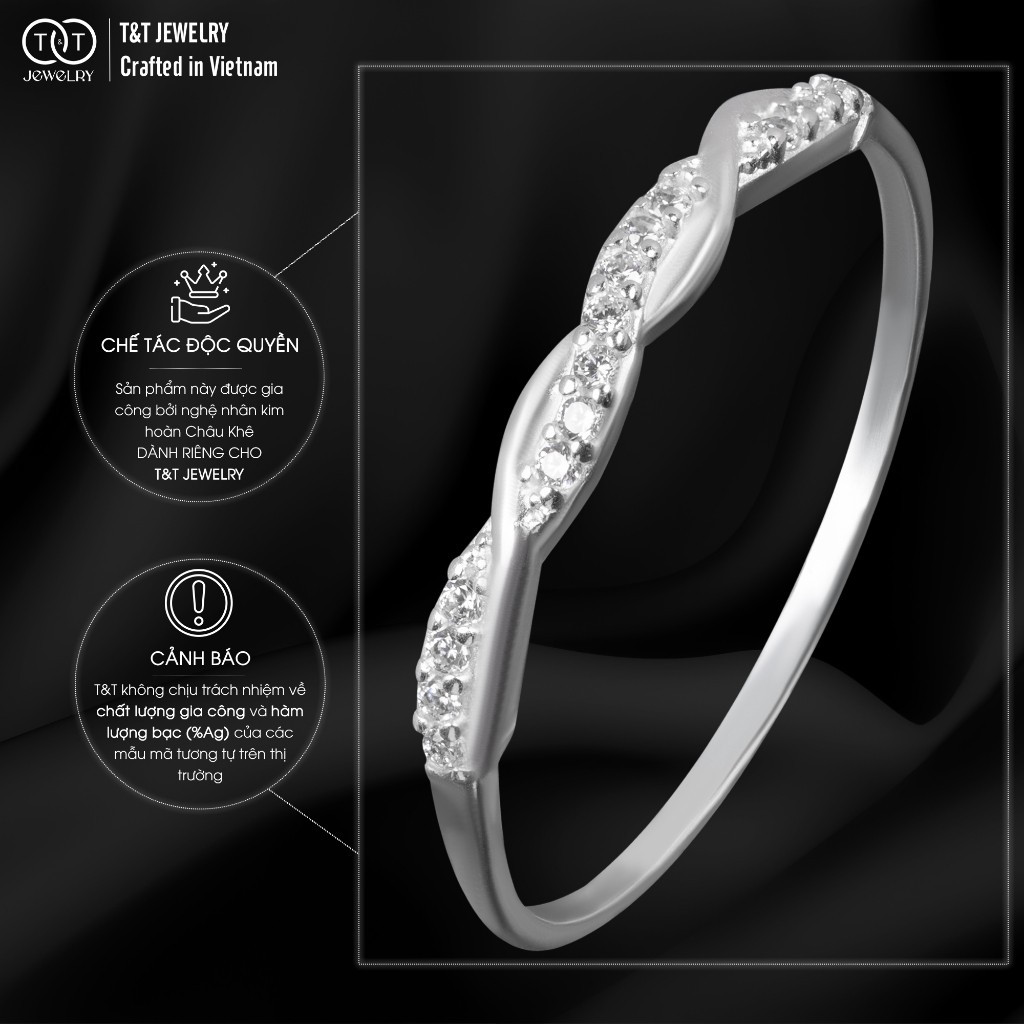 Nhẫn Bạc Nữ Dáng Xoắn Kép Đan Xen Đính Đá, Cá Tính Và Tinh Tế T&T Jewelry NT282551
