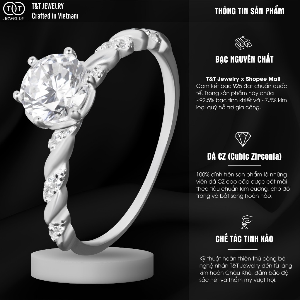 Nhẫn Bạc Nữ Dáng Xoắn Tinh Xảo Đính Đá CZ Lấp Lánh Tôn Da Từ T&T Jewelry N715251