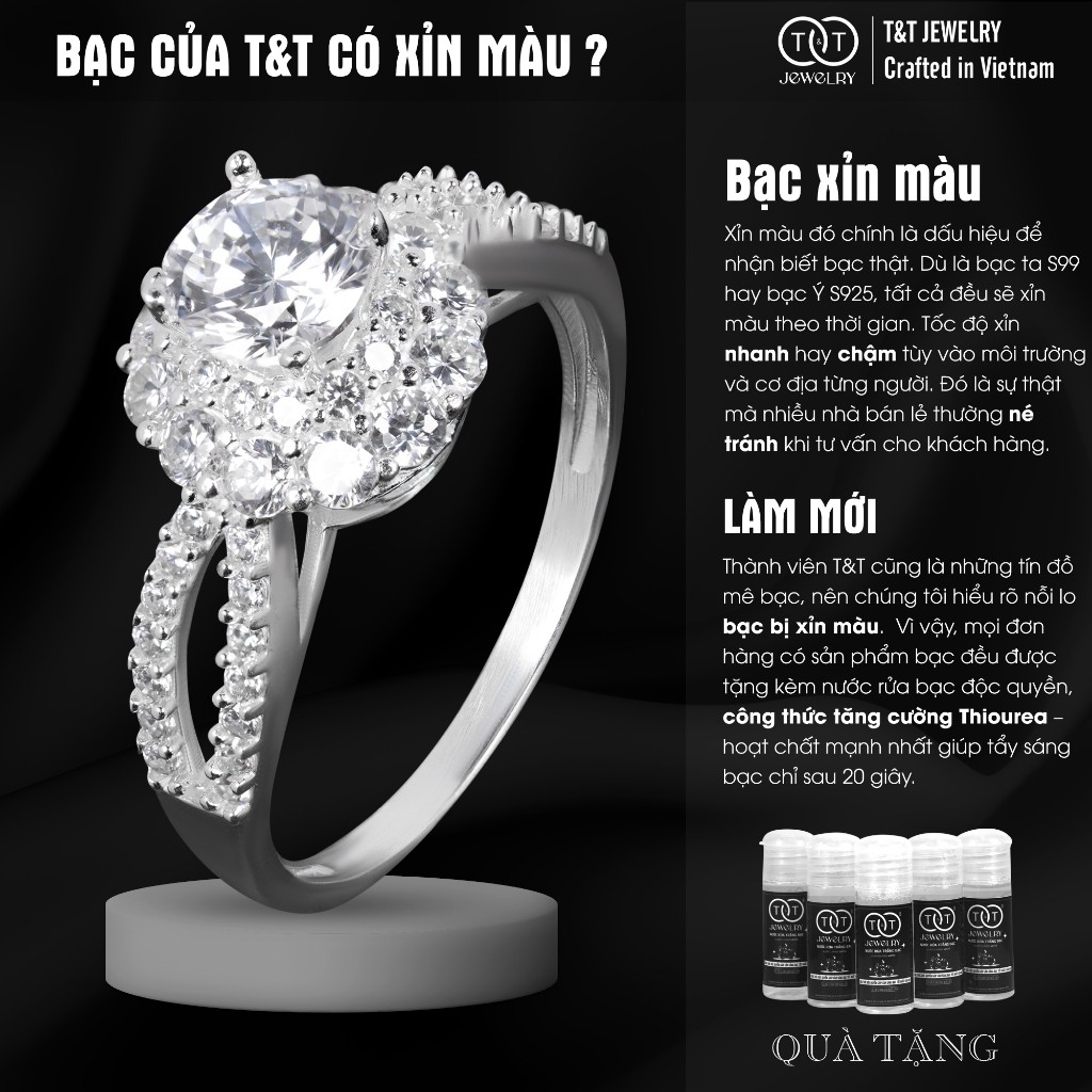 💍 ✨ Đắm Chìm Trong Vẻ Đẹp Tinh Khôi Của Nhẫn Bạc Nữ T&T Jewelry – Nơi Nét Đẹp Hoàn Hảo Hội Tụ! ✨ 💍Bạn đang tìm kiếm một món trang sức không chỉ là phụ kiện, mà còn là tuyên ngôn phong cách của riêng bạn? Chiếc nhẫn bạc nữ của T&T Jewelry chính là lựa chọn hoàn hảo! 💖✨ Chiếc nhẫn này gây ấn tượng ngay từ cái nhìn đầu tiên với viên đá CZ trung tâm sáng lấp lánh, được ôm trọn bởi vòng xoáy của hàng chục viên đá CZ nhỏ hơn, tạo nên hiệu ứng hoa mai nở rộ kiêu sa và lộng lẫy. 🌸 Các viên đá nhỏ được sắp xếp tỉ mỉ, tạo độ phồng và bắt sáng tuyệt đối, khiến ánh nhìn không thể rời. Dáng nhẫn thanh mảnh nhưng vẫn đủ nổi bật, với hai bên thân nhẫn được tô điểm thêm bởi những hàng đá CZ nhỏ xếp đều tăm tắp, ôm trọn lấy ngón tay bạn, mang đến sự sang trọng và tinh tế mà không hề phô trương.🌟 Mỗi đường nét, mỗi chi tiết của chiếc nhẫn đều được chế tác độc quyền bởi nghệ nhân kim hoàn làng Châu Khê 500 năm tuổi, nơi tinh hoa nghề kim hoàn được truyền giữ qua bao thế hệ. Từng mặt cắt của viên đá đều được mài giũa cẩn thận, đảm bảo độ lấp lánh tối đa, thu hút mọi ánh nhìn. Đây không chỉ là một chiếc nhẫn, mà là một tác phẩm nghệ thuật, là biểu tượng của sự nữ tính, quyền quý và đẳng cấp. 👑 Đeo chiếc nhẫn này, bạn sẽ cảm nhận được sự tự tin, rạng ngời toát ra từ chính phong thái của mình. 💫THÔNG TIN SẢN PHẨM💎 Chất liệu Bạc 925 Cao CấpBạn có biết vì sao bạc 925 được mệnh danh là “nữ hoàng” của các loại bạc không? 👑 Bạc 925 là hợp kim của 92.5% bạc nguyên chất và 7.5% các hợp kim quý khác. Tại sao không phải 100% bạc nguyên chất? Đơn giản vì bạc 100% rất mềm, dễ biến dạng, không đủ độ bền để tạo nên những thiết kế tinh xảo và giữ form dáng lâu dài. Tỷ lệ 92.5% bạc nguyên chất giúp trang sức bền hơn, cứng cáp hơn, đồng thời vẫn giữ được vẻ đẹp sáng bóng tự nhiên của bạc, đảm bảo độ bền và tính thẩm mỹ vượt trội. Tất cả sản phẩm của T&T Jewelry đều được gia công và chế tác 100% thủ công bởi nghệ nhân kim hoàn Châu Khê, mang đến chất lượng hoàn mỹ và độc đáo.Lưu ý quan trọng: Nếu bạn thấy các mẫu mã tương tự trên thị trường, hãy cẩn trọng! T&T Jewelry không chịu trách nhiệm về hàm lượng bạc và chất lượng chế tác của các sản phẩm nhái. Chúng tôi cam kết chất lượng bạc chuẩn và thiết kế độc quyền từ nghệ nhân nhà T&T.HƯỚNG DẪN SỬ DỤNG & BẢO QUẢN – ĐỂ TRANG SỨC BẠC LUÔN BỀN ĐẸP CÙNG THỜI GIAN✨ Trang sức bạc đẹp nhất khi được yêu thương và chăm sóc đúng cách! ✨1️⃣ Lau chùi nhẹ nhàng: Sau mỗi lần đeo, hãy dùng khăn mềm hoặc khăn lau bạc chuyên dụng để lau sạch bụi bẩn, mồ hôi, giúp bạc luôn sáng bóng.2️⃣ Hạn chế tiếp xúc hóa chất: Nước hoa, mỹ phẩm, nước rửa tay, hóa chất tẩy rửa có thể làm bạc xỉn màu nhanh hơn. Hãy đeo trang sức sau khi trang điểm và tránh đeo khi làm việc nhà.3️⃣ Cất giữ cẩn thận: Khi không sử dụng, bảo quản trang sức trong hộp kín hoặc túi zip để hạn chế tiếp xúc với không khí, giúp giảm nguy cơ oxy hóa.4️⃣ Làm sạch định kỳ: Mỗi tháng 1 lần hoặc bạn cảm thấy có dấu hiệu bạc xỉn màu thì hãy sử dụng nước rửa bạc chuyên dụng với công thức độc quyền của T&T để trang sức bạc trắng sáng trở lại ngay lập tức chỉ trong 5 giây! Đây là tính chất tự nhiên của bạc thật, hoàn toàn không phải lỗi sản phẩm.5️⃣ Tháo trang sức khi vận động: Để tránh trầy xước, méo móp do va đập, bạn nên tháo trang sức khi tập thể thao, làm việc nặng hoặc tiếp xúc với nước bể bơi chứa clo.✨ T&T JEWELRY – BẢO HÀNH & HỖ TRỢ KHÁCH HÀNG ✨💖 Cảm ơn bạn đã chọn T&T Jewelry!Trang sức không chỉ là một món phụ kiện, mà còn là cách bạn thể hiện phong cách và cá tính. Khi mua trang sức online, chúng tôi hiểu rằng bạn có thể có những băn khoăn như:1️⃣ “Liệu sản phẩm có giống ảnh không?”2️⃣ “Có phải bạc thật không?”3️⃣ “Nếu có vấn đề thì làm sao?”💯 T&T Jewelry x Shopee Mall cam kết mang đến bạc 925 cao cấp cùng sự hỗ trợ tận tâm, giúp bạn hoàn toàn yên tâm khi mua sắm:1️⃣ Hoàn tiền nhanh chóng trong 7 ngày nếu sản phẩm không đúng mô tả hoặc có lỗi từ nhà sản xuất.2️⃣ T&T cam kết đền gấp 10 lần giá trị nếu sản phẩm khách hàng nhận được là bạc giả – và chúng tôi chịu hoàn toàn trách nhiệm trước pháp luật Việt Nam.3️⃣ Bảo hành trọn đời với lỗi kỹ thuật do nhà sản xuất – chỉ cần nhắn Shopee Chat, chúng tôi sẽ hỗ trợ ngay!⛔ Hỗ trợ nhanh chóng và duy nhất qua Shopee Chat – đảm bảo giao dịch an toàn, MINH BẠCH, tuân thủ quy định của Shopee và giúp bạn tránh mọi rủi ro từ các kênh không chính thống. Không hỗ trợ qua các kênh liên lạc ngoại sàn khác để bảo vệ quyền lợi của bạn. Nếu có bất kỳ vấn đề gì, đừng lo lắng! Nhắn nga