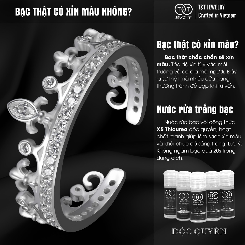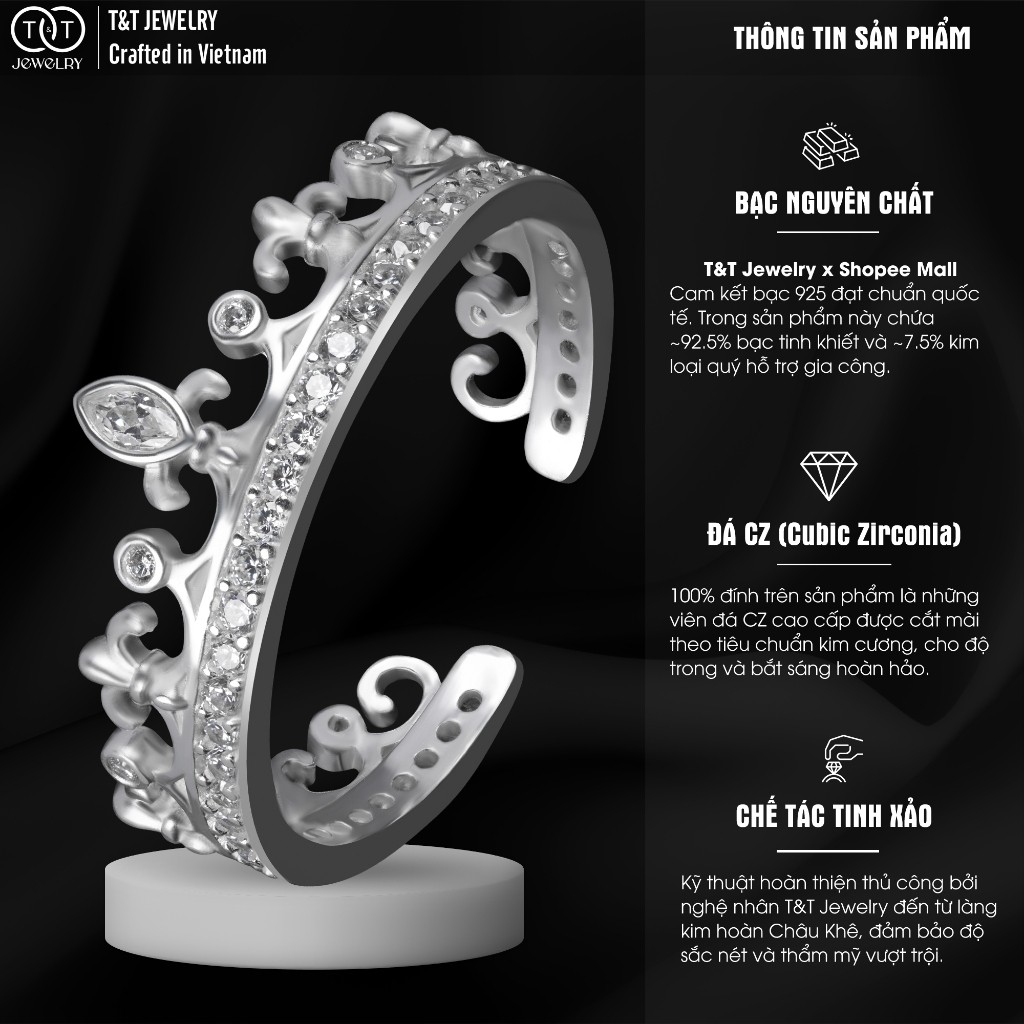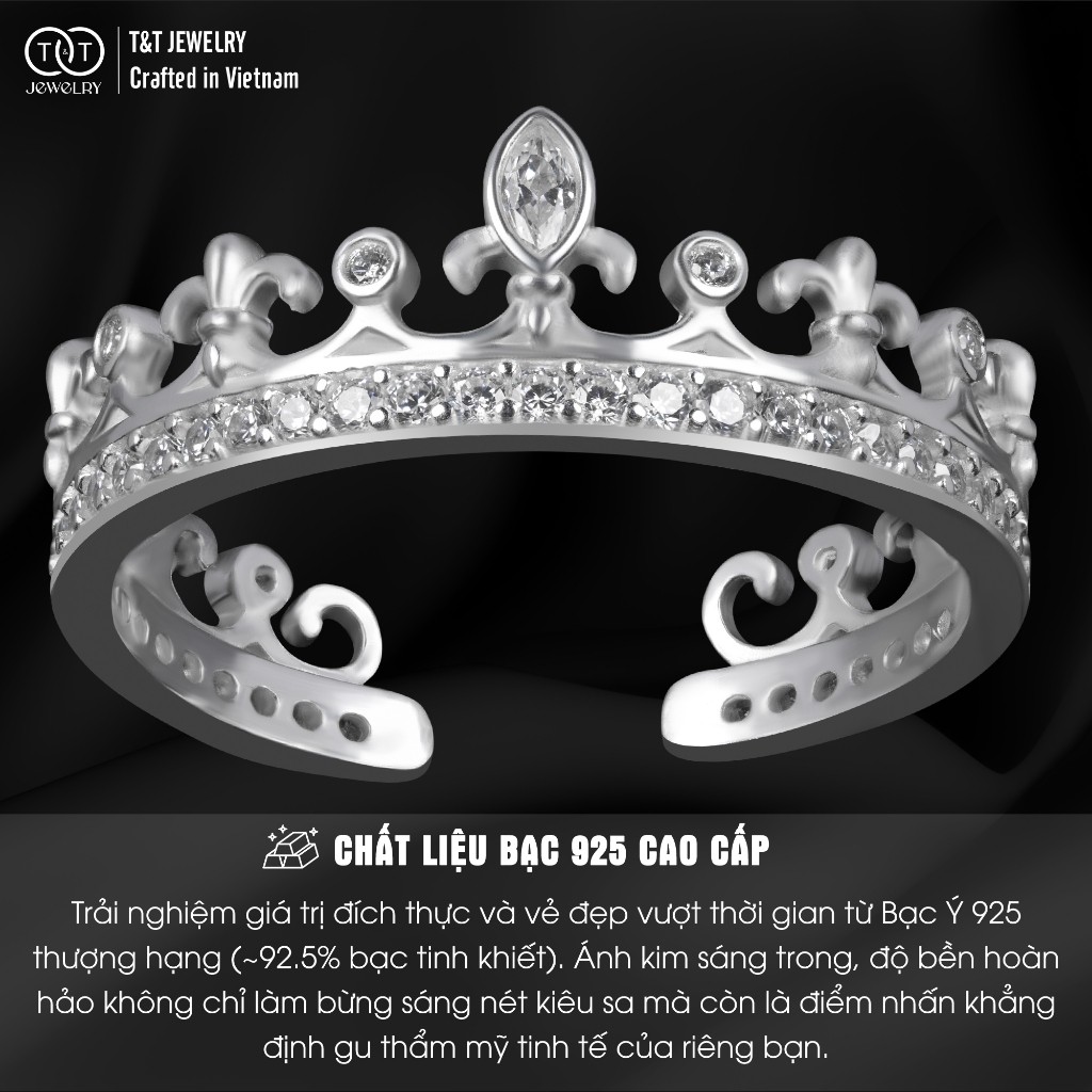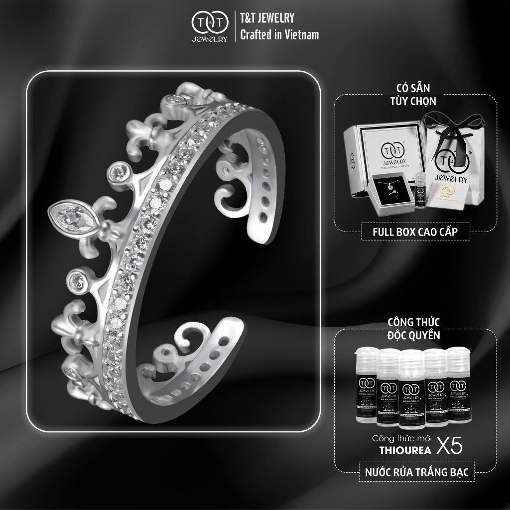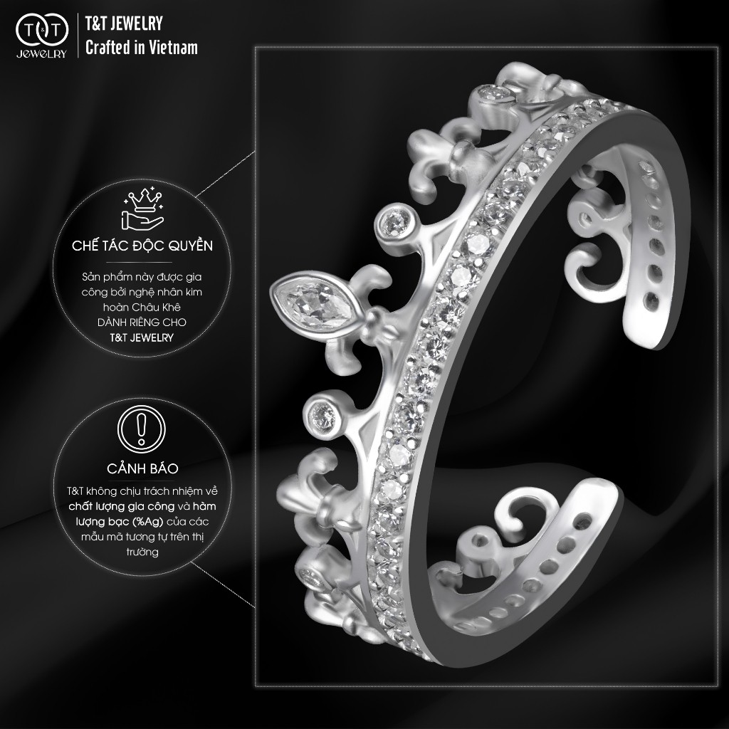 Nhẫn Bạc Nữ FreeSize Vương Miện Nữ Hoàng Kiêu Hãnh Đính Đá CZ Quyền Rũ Tinh Xảo T&T Jewelry NT58259