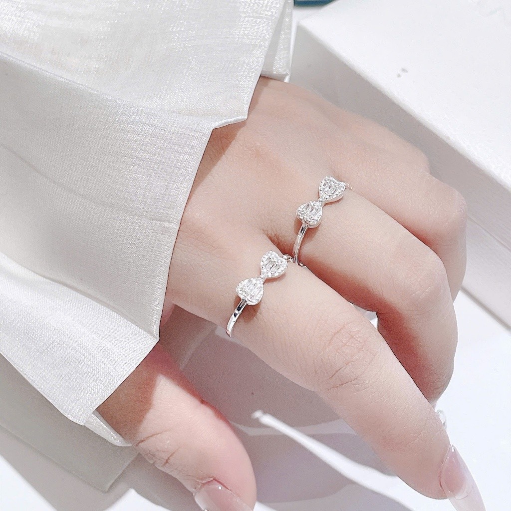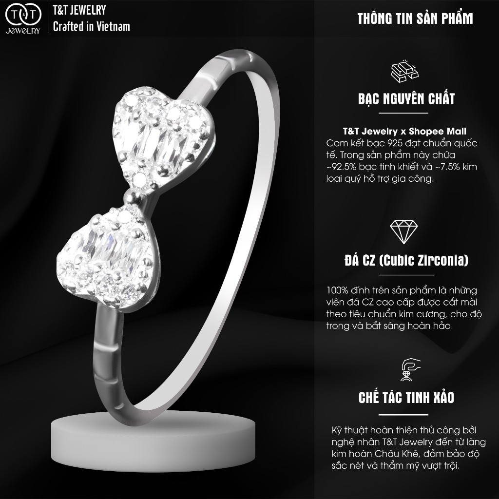 Nhẫn Bạc Nữ Lời Thì Thầm Của Hai Trái Tim Đính Đá CZ Tinh Xảo Quyến Rũ T&T Jewelry NT28258