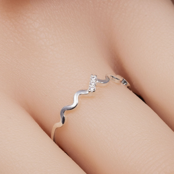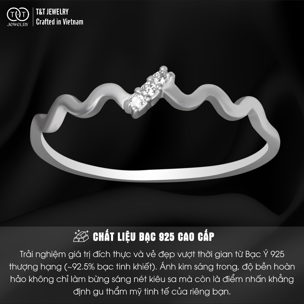 Nhẫn Bạc Nữ Sóng Lượn Tinh Tế Đính Đá CZ Lấp Lánh T&T Jewelry N2255