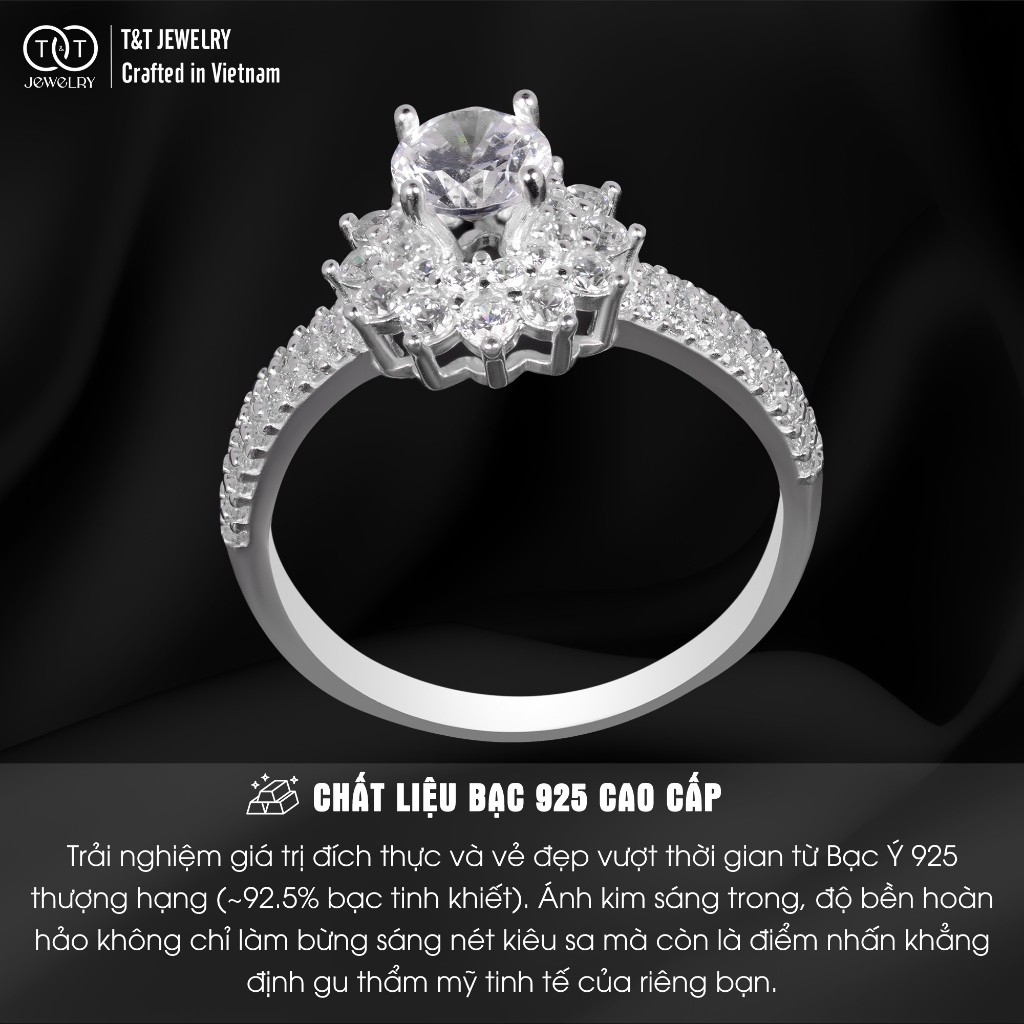 Nhẫn Bạc Nữ Thiết Kế Hoa Đá CZ Lấp Lánh, Đẳng Cấp T&T Jewelry N2253