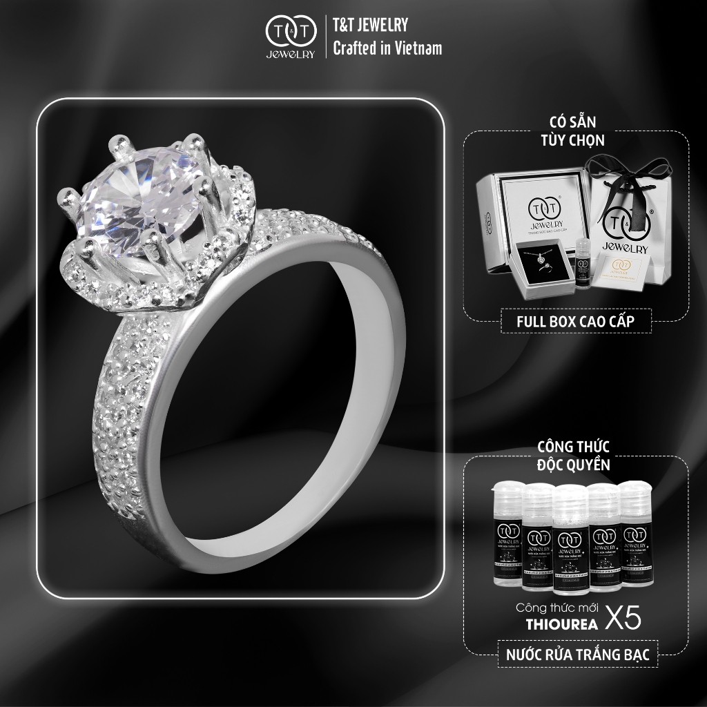 Nhẫn Bạc Nữ Vương Miện Hoàng Gia Quý Phái,Sang Trọng T&T Jewelry NN066