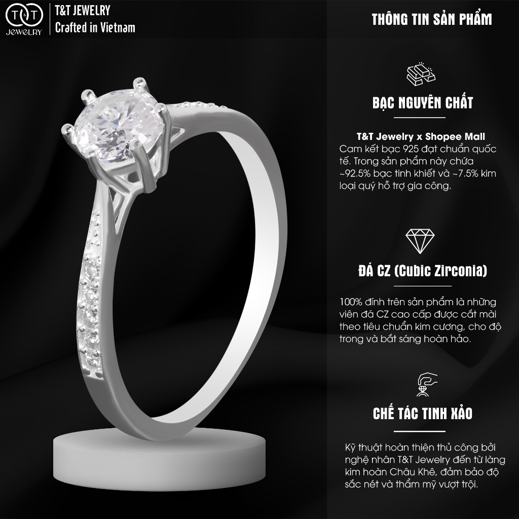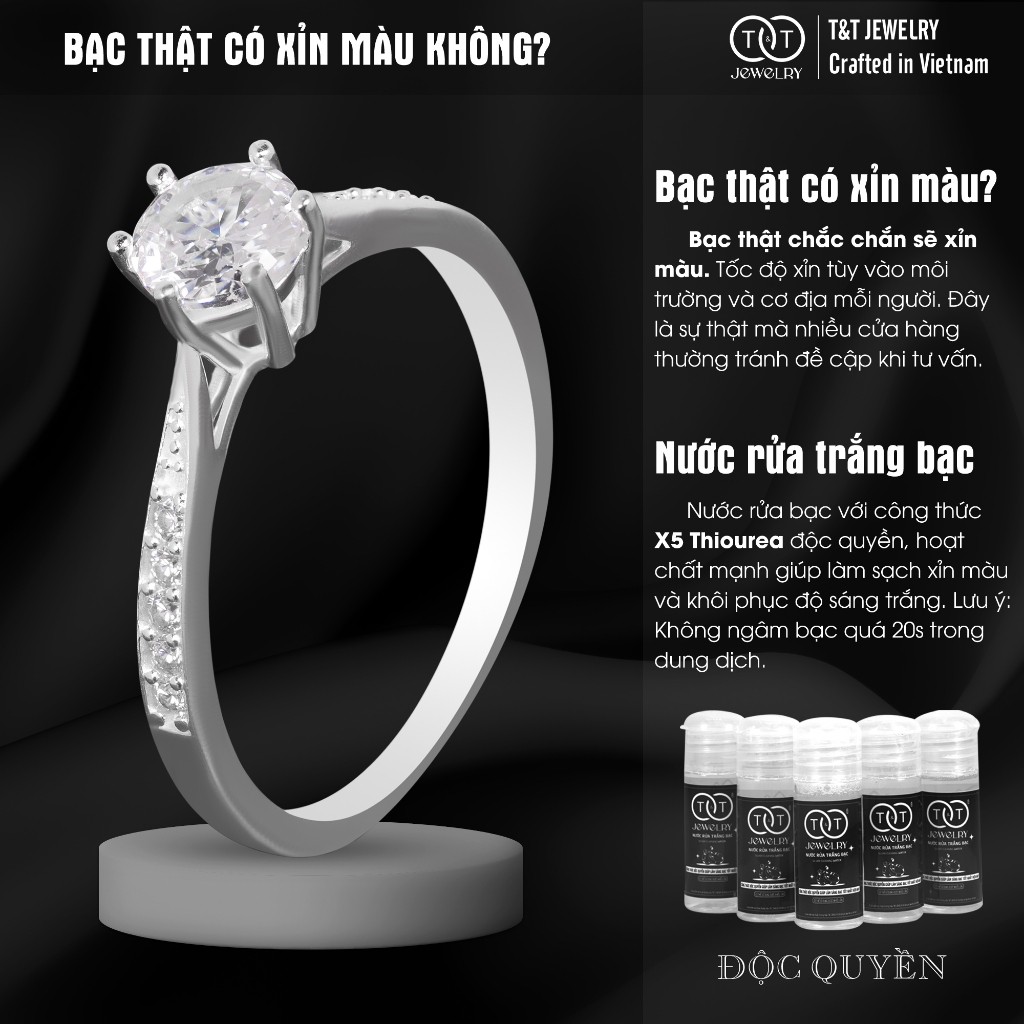 💍 TỎA SÁNG KIÊU HÃNH CÙNG VƯƠNG MIỆN TINH TÚ 💍Nàng có nghe không, lời thì thầm của một vì sao? Không chỉ là một chiếc nhẫn bạc nữ, đây là một lời tuyên ngôn về vẻ đẹp độc bản và khí chất riêng của nàng. T&T Jewelry tin rằng mỗi cô gái xứng đáng có một khoảnh khắc được tỏa sáng như một nữ hoàng.✨ Thiết kế “Vương Miện Tinh Tú” sinh ra để biến khoảnh khắc ấy thành hiện thực. Trái tim của chiếc nhẫn là viên đá CZ chủ lấp lánh, được nâng đỡ kiêu hãnh bởi sáu chấu tựa như một chiếc vương miện quyền quý. Dải nhẫn bạc 925 được đính một hàng đá CZ tấm tỉ mỉ, tựa như dải ngân hà hội tụ, tôn vinh trọn vẹn vẻ rực rỡ của vì sao trung tâm.Từng đường nét của chiếc nhẫn đính đá này không chỉ là trang sức bạc cao cấp, mà còn là tâm huyết của nghệ nhân kim hoàn Châu Khê, thổi hồn vào một tác phẩm nghệ thuật tinh xảo, dành riêng cho nàng.Lưu ý: Nhiều sản phẩm trên thị trường có thể có thiết kế tương tự, nhưng T&T JEWELRY cam kết chất lượng bạc 925 chuẩn và độ tinh xảo trong từng đường nét chế tác bởi nghệ nhân Châu Khê – điều làm nên sự khác biệt và giá trị thực sự.Ảnh sản phẩm do T&T JEWELRY tự chụp, màu sắc có thể chênh lệch không đáng kể (khoảng 3-5%) do điều kiện ánh sáng và màn hình hiển thị.THÔNG TIN SẢN PHẨM💎 Chất Liệu Bạc S925 Cao Cấp: Sản phẩm được chế tác từ bạc Ý 925 (gồm 92.5% bạc nguyên chất và 7.5% hợp kim cao cấp). Việc pha thêm hợp kim giúp trang sức cứng cáp, giữ form hoàn hảo và có độ sáng bóng vượt trội so với bạc ta nguyên chất vốn rất mềm.💎 Đá CZ (Cubic Zirconia) Tuyển Chọn: 100% đá trên nhẫn là đá CZ loại cao cấp nhất, được cắt mài theo tiêu chuẩn kim cương, mang đến độ trong suốt và khả năng bắt sáng rực rỡ, tạo hiệu ứng lấp lánh thu hút mọi ánh nhìn.💎 Nguồn Gốc Chế Tác: Tác phẩm được chế tác 100% bởi bàn tay tài hoa của các nghệ nhân tại làng nghề kim hoàn truyền thống Châu Khê với hơn 500 năm lịch sử, đảm bảo mỗi chi tiết đều đạt độ tinh xảo và thẩm mỹ vượt trội.✨ T&T JEWELRY – BẢO HÀNH & HỖ TRỢ KHÁCH HÀNG ✨💖 Cảm ơn bạn đã chọn T&T Jewelry!Trang sức không chỉ là một món phụ kiện, mà còn là cách bạn thể hiện phong cách và cá tính. Khi mua trang sức online, chúng tôi hiểu rằng bạn có thể có những băn khoăn như:1️⃣ “Liệu sản phẩm có giống ảnh không?”2️⃣ “Có phải bạc thật không?”3️⃣ “Nếu có vấn đề thì làm sao?”💯 T&T Jewelry x Shopee Mall cam kết mang đến bạc 925 cao cấp cùng sự hỗ trợ tận tâm, giúp bạn hoàn toàn yên tâm khi mua sắm:1️⃣ Hoàn tiền nhanh chóng trong 7 ngày nếu sản phẩm không đúng mô tả hoặc có lỗi từ nhà sản xuất.2️⃣ T&T cam kết đền gấp 10 lần giá trị nếu sản phẩm khách hàng nhận được là bạc giả – và chúng tôi chịu hoàn toàn trách nhiệm trước pháp luật Việt Nam.3️⃣ Bảo hành trọn đời với lỗi kỹ thuật do nhà sản xuất – chỉ cần nhắn Shopee Chat, chúng tôi sẽ hỗ trợ ngay!⛔ Hỗ trợ nhanh chóng và duy nhất qua Shopee Chat – đảm bảo giao dịch an toàn, MINH BẠCH, tuân thủ quy định của Shopee và giúp bạn tránh mọi rủi ro từ các kênh không chính thống. Chúng tôi không hỗ trợ qua các nền tảng ngoại sàn để bảo vệ quyền lợi tối đa của bạn. Nếu có bất kỳ vấn đề gì, đừng lo lắng! Nhắn ngay cho chúng tôi qua Shopee Chat, đội ngũ T&T Jewelry sẽ hỗ trợ tận tình!❓ SỰ THẬT VỀ BẠC 925 – HIỂU ĐỂ AN TÂM1️⃣ Trang sức của T&T Jewelry có phải bạc thật không?✔ Cam kết 100% bạc 925 cao cấp, chứa 92,5% bạc nguyên chất, đạt tiêu chuẩn quốc tế.2️⃣ Tại sao bạc bị xỉn màu? Có phải hàng kém chất lượng không?🌟 Hoàn toàn không! Đây chính là dấu hiệu của bạc thật! 🌟 Bạc phản ứng tự nhiên với lưu huỳnh trong không khí và mồ hôi. Tùy cơ địa và môi trường, bạc có thể xỉn màu nhanh hay chậm, đây là tính chất hóa học tự nhiên, không phải lỗi sản phẩm.💡 Giải pháp cực đơn giản: Sử dụng nước rửa bạc chuyên dụng độc quyền của T&T, trang sức sẽ sáng trắng trở lại chỉ trong vài giây!3️⃣ Tại sao có loại bạc không bị xỉn màu?Đó là bạc đã được xi một lớp kim loại khác (rhodium, vàng trắng…). Lớp xi này sẽ mòn đi theo thời gian và bạc bên trong vẫn có thể bị xỉn màu. T&T Jewelry tập trung vào chất lượng bạc nguyên bản để đảm bảo vẻ đẹp bền vững.🌟 HƯỚNG DẪN SỬ DỤNG ĐỂ TRANG SỨC BẠC LUÔN SÁNG BÓNG1️⃣ Lau chùi nhẹ nhàng: Dùng khăn mềm lau sau mỗi lần đeo.2️⃣ Hạn chế tiếp xúc hóa chất: Đeo trang sức sau khi trang điểm, xịt nước hoa.3️⃣ Cất giữ cẩn thận: Bảo quản trong túi zip hoặc hộp kín khi không dùng.4️⃣ Làm sạch định kỳ: Dùng nước rửa bạc của shop khi thấy bạc có dấu hiệu xỉn màu.5️⃣ Tháo trang sức khi vận động mạnh hoặc đi bơi để tránh va đập, trầy xước.💖 Bạn Hài Lòng – T&T Hạnh Phúc: Một đánh giá 5 sao ⭐⭐⭐⭐⭐ sẽ là đ
