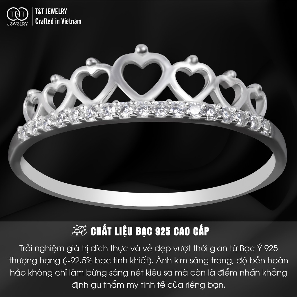 Nhẫn Bạc Nữ Vương Miện Trái Tim Thanh Lịch – Tinh Tế – Tinh Xảo T&T Jewelry NT28257