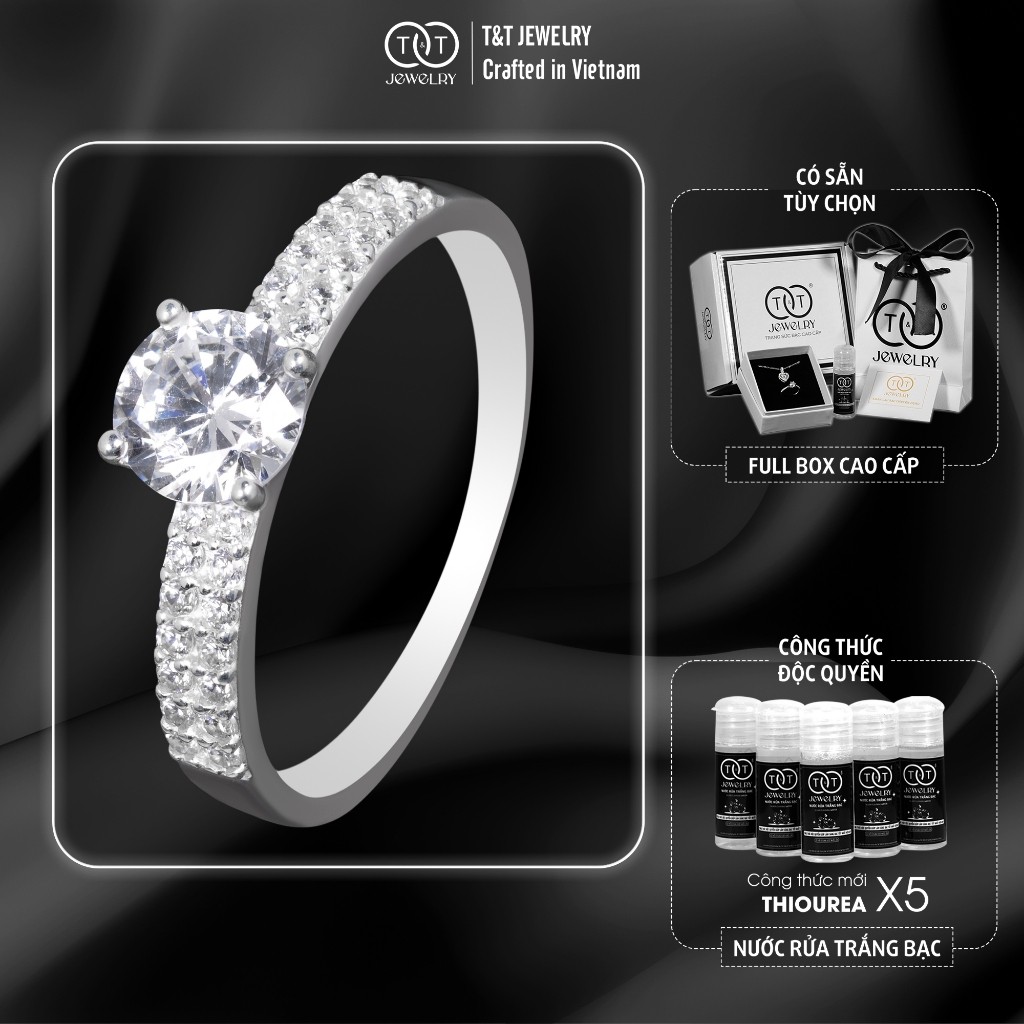 1. Nhẫn Bạc Nữ Đá Chủ Tròn, Lấp Lánh Viền Đá Tấm Sang Trọng Tinh Xảo T&T Jewelry NT2368